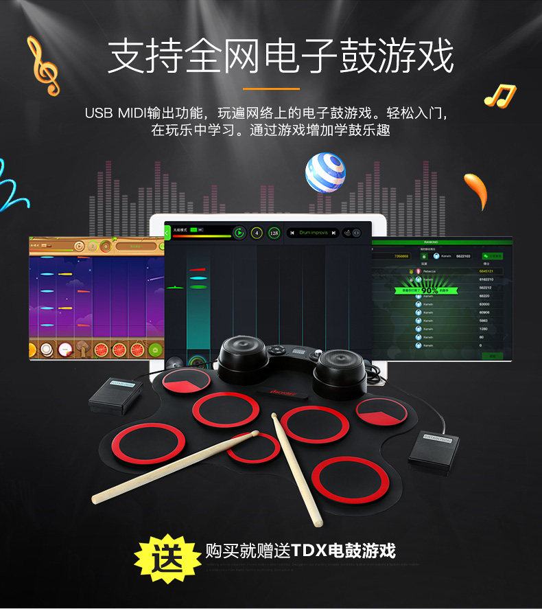 Электронные барабаны, портативные складные ударные инструменты для начинающих для детей и взрослых