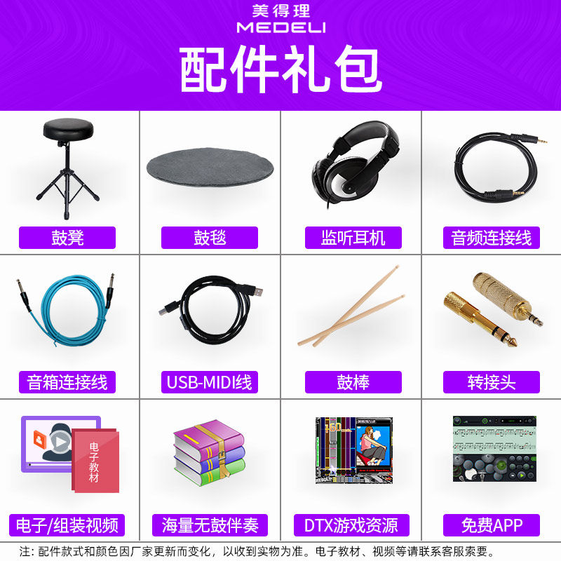 - DD513 Electric Drum Set+Полный набор подарочных пакетов (барабанные одеяла, исключая динамики)