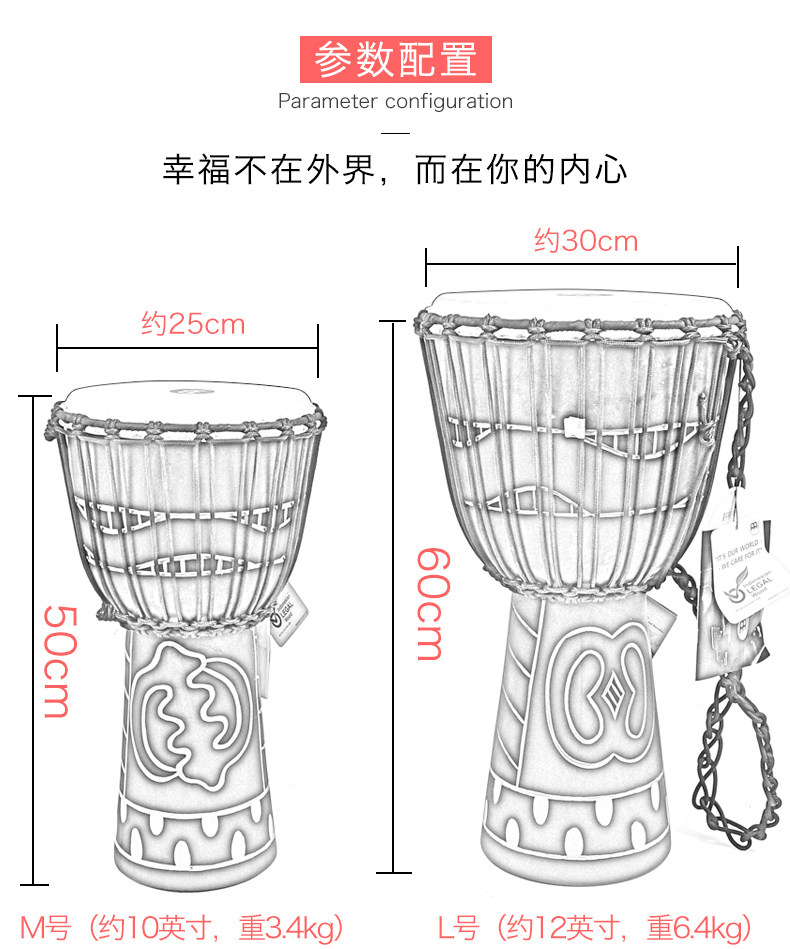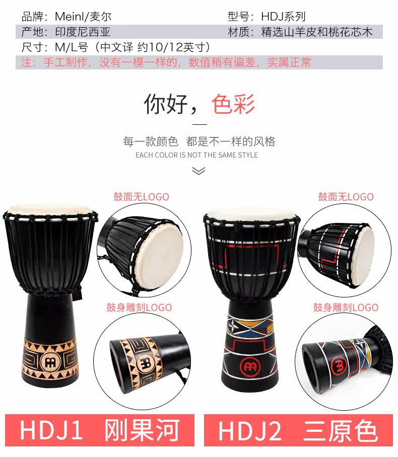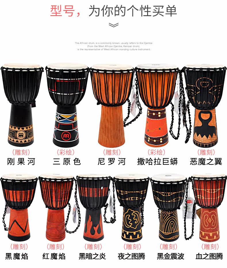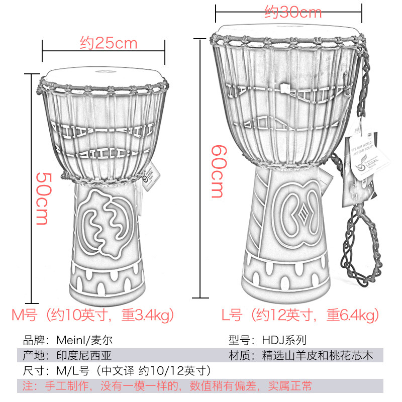 Африканский барабан Melinl HDJ серия 10 -12 -дюймовый древесина, выдолбленная на ручной ручной работы Юньнани Лицзян