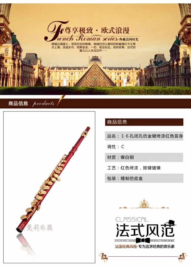 Инструмент флейты 16 закрытый -золотые клавиши, краска цвета флейта белая медная настройка и игра в специальную флейту