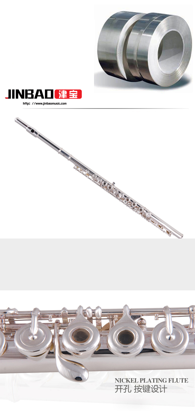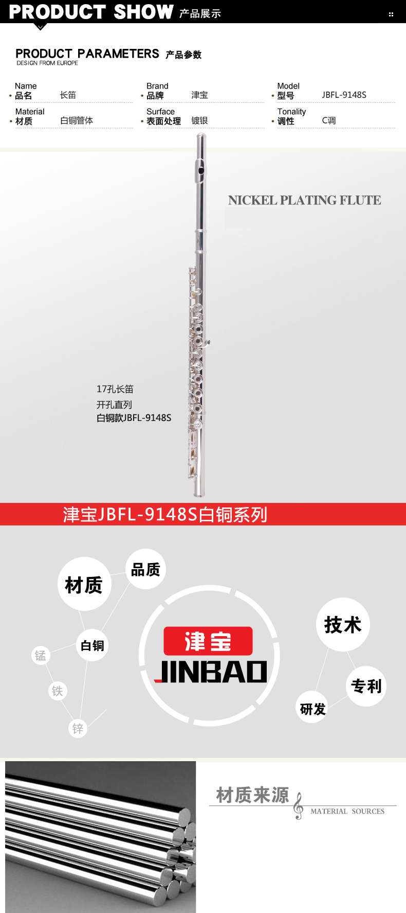 津宝 JBFL-9148S Белая медная трубка с 17 лунками серебряной флейта.