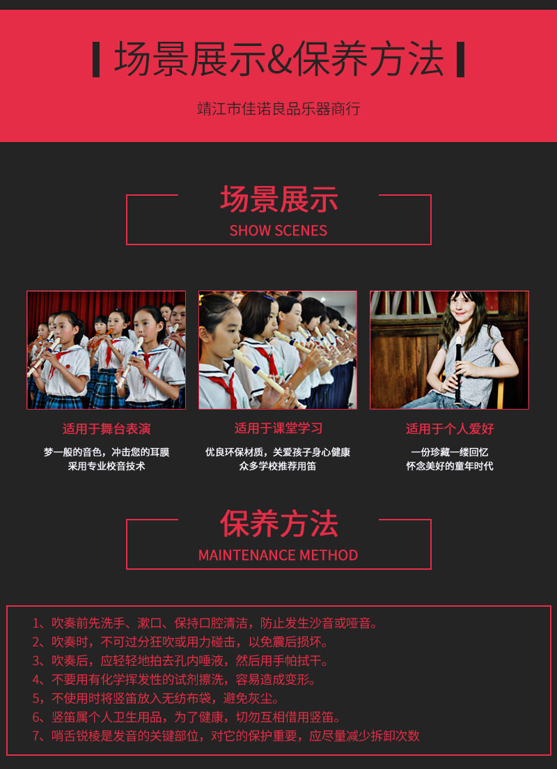 (2)  после каждого представления вы можете промыть свисток водой, но деревянный свисток не должен быть промыт водой, чтобы избежать влаги.После того, как свисток свист высох, положите его в специальную сумку или коробку.