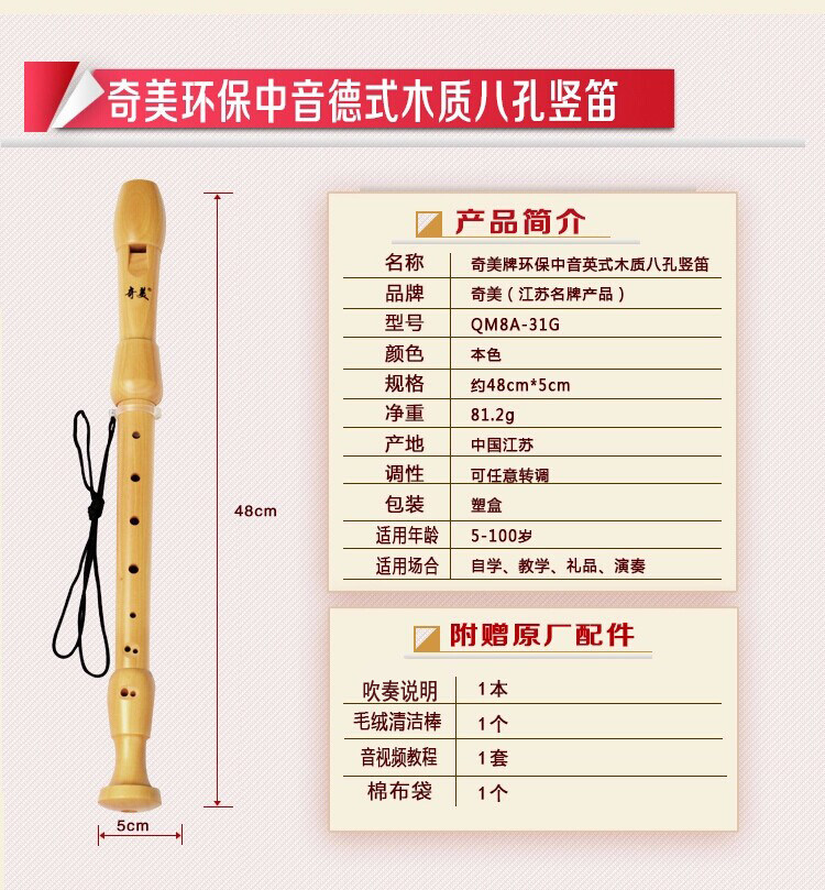 Chi Mei Бренд Требл среднего звука -стиль британской барокко восемь -отверстие деревянной говядины 8 -дыра полная деревянная, полная звуковой деревянной флейты