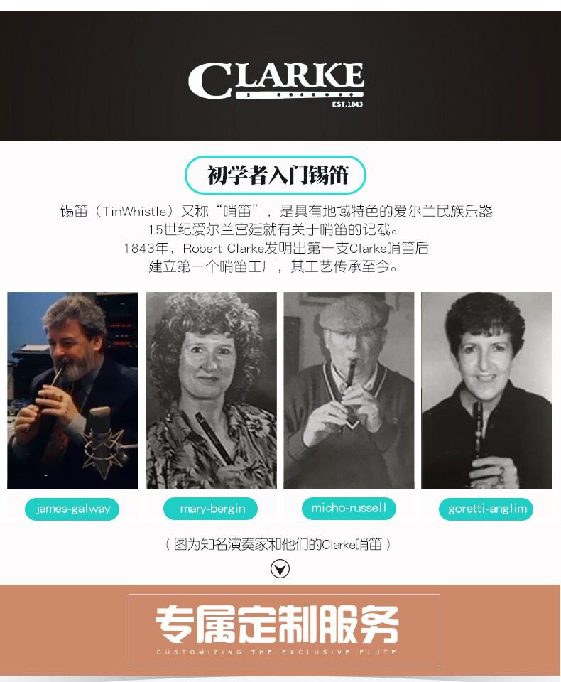Clarke Clark Irish Whistle Flute Kids's Beving's Stiao di Профессиональный металлический флейта музыкальный инструмент D мелодия C