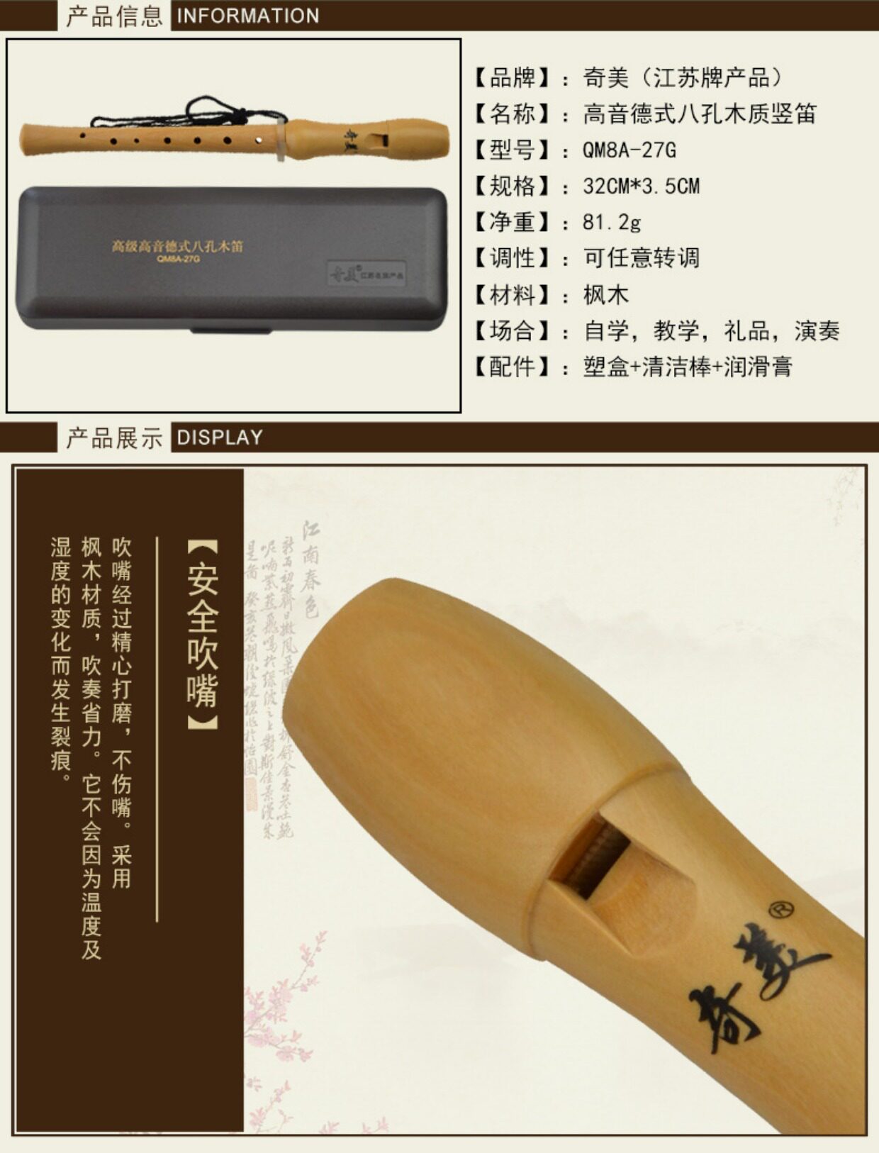 奇美 Бренд Требл Полный дерево, восемь -отверстие, шесть -ямые флейта 8 -отверстие ученики детей профиль детских профиль класс в классе преподавание
