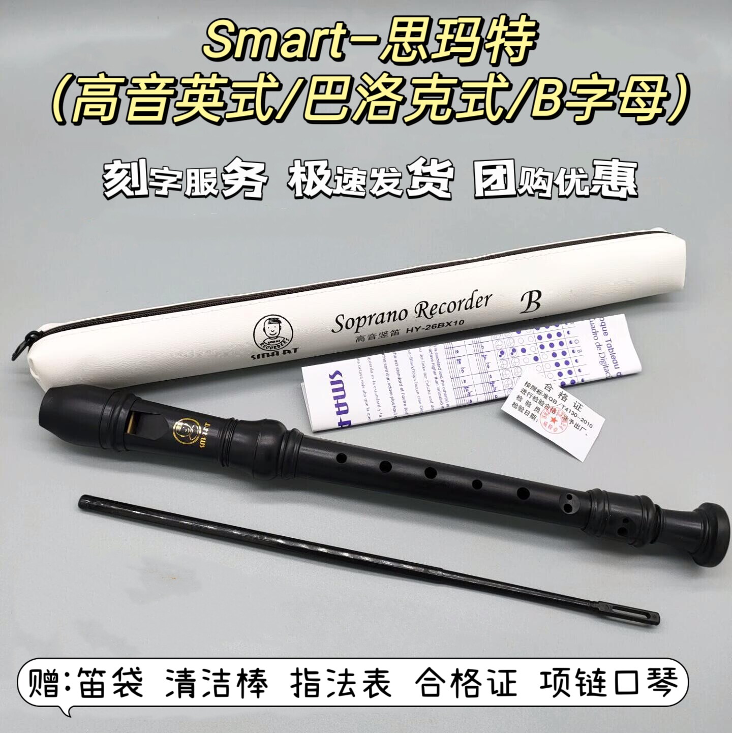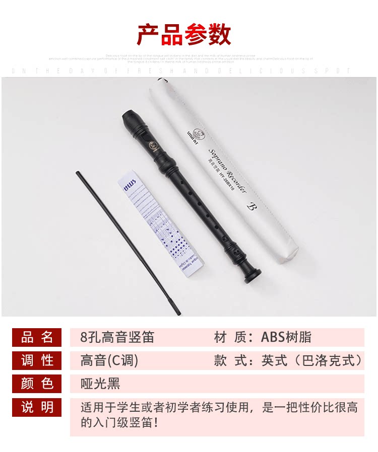Аксессуары: сумка для флейты (белая), чистящая палочка, столик для аппликатуры