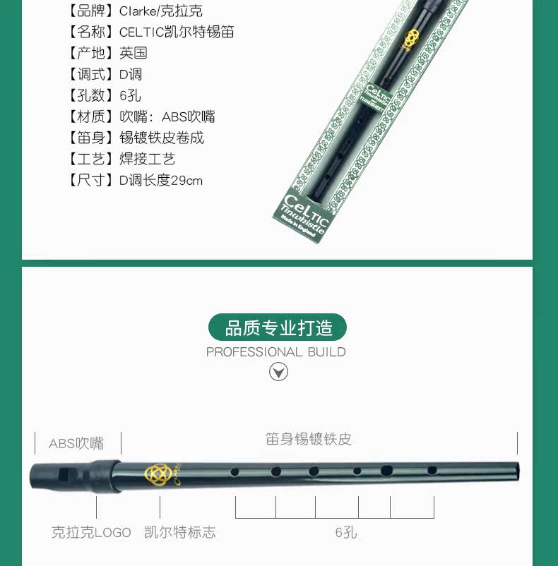 Clarke Clark Irish Whistle Celtic Skin Детская школа Профессиональная школа Профессионала Metal Flute D