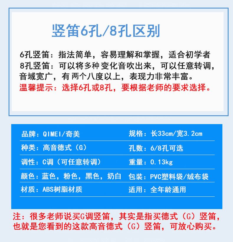 奇美 Маленькая сидячая высокая добродетель G, 6 -яма 8 -отверстие ученики с шестью -ямыми восьми -дырой расклешенной флейта c