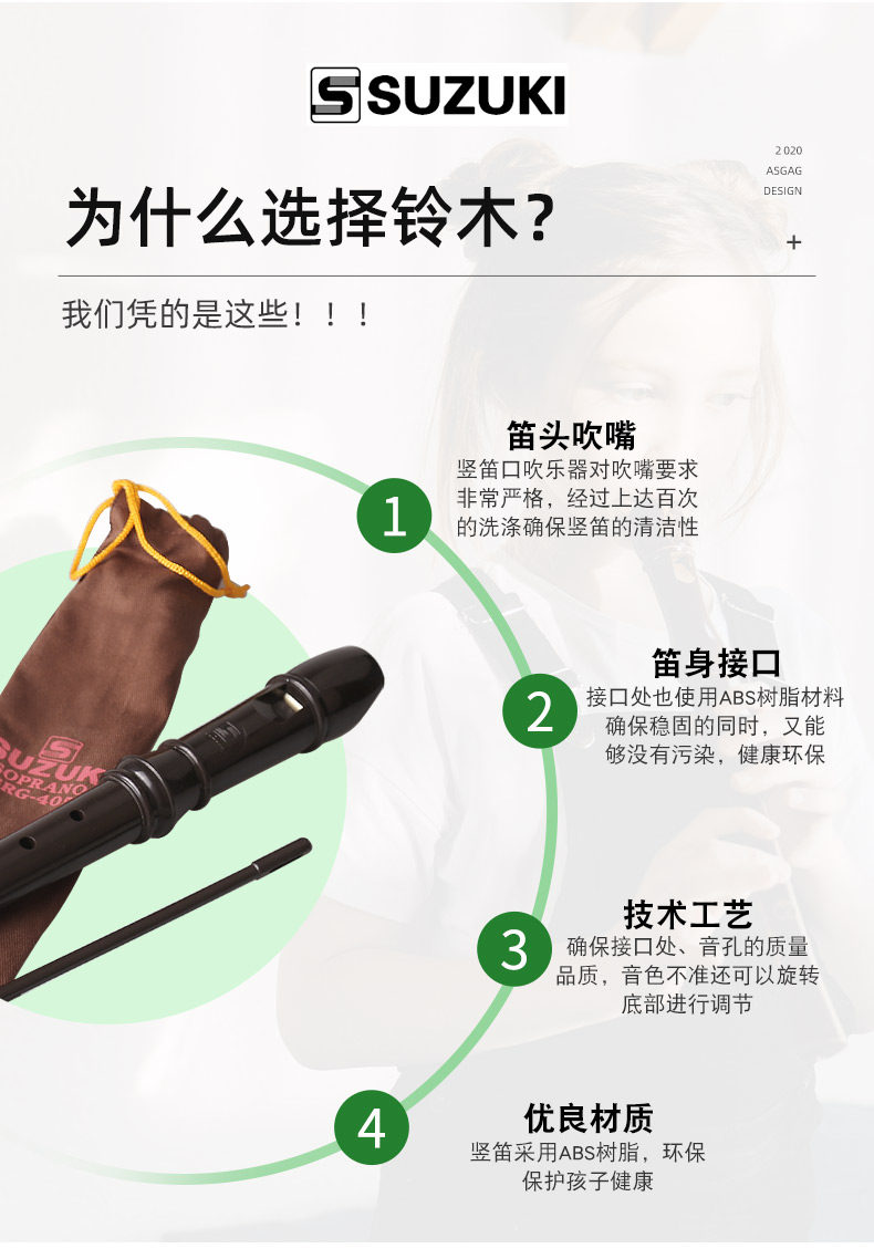SUZUKI Suzuki 8-луночный рекордер для начинающих детей.