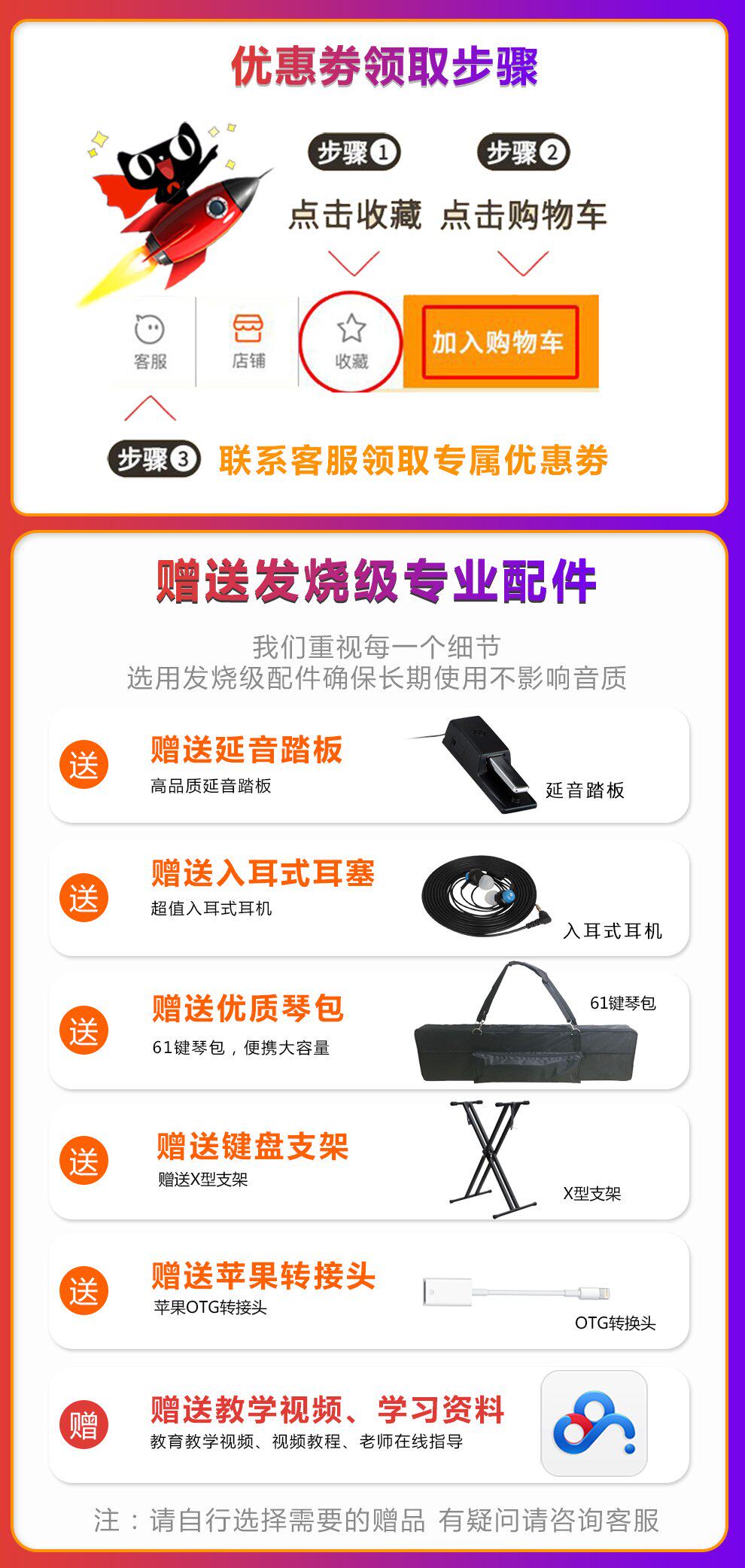 | Цвет: | 61 ключ+педали, 61 ключ+сумка для фортепиано, 61 ключ+кронштейн, 61 клавиша + оригинальный адаптер Apple, Оригинальный яблочный адаптер, Добавить еще один подарок+50 юаней, Беруши, 61 клавиш |