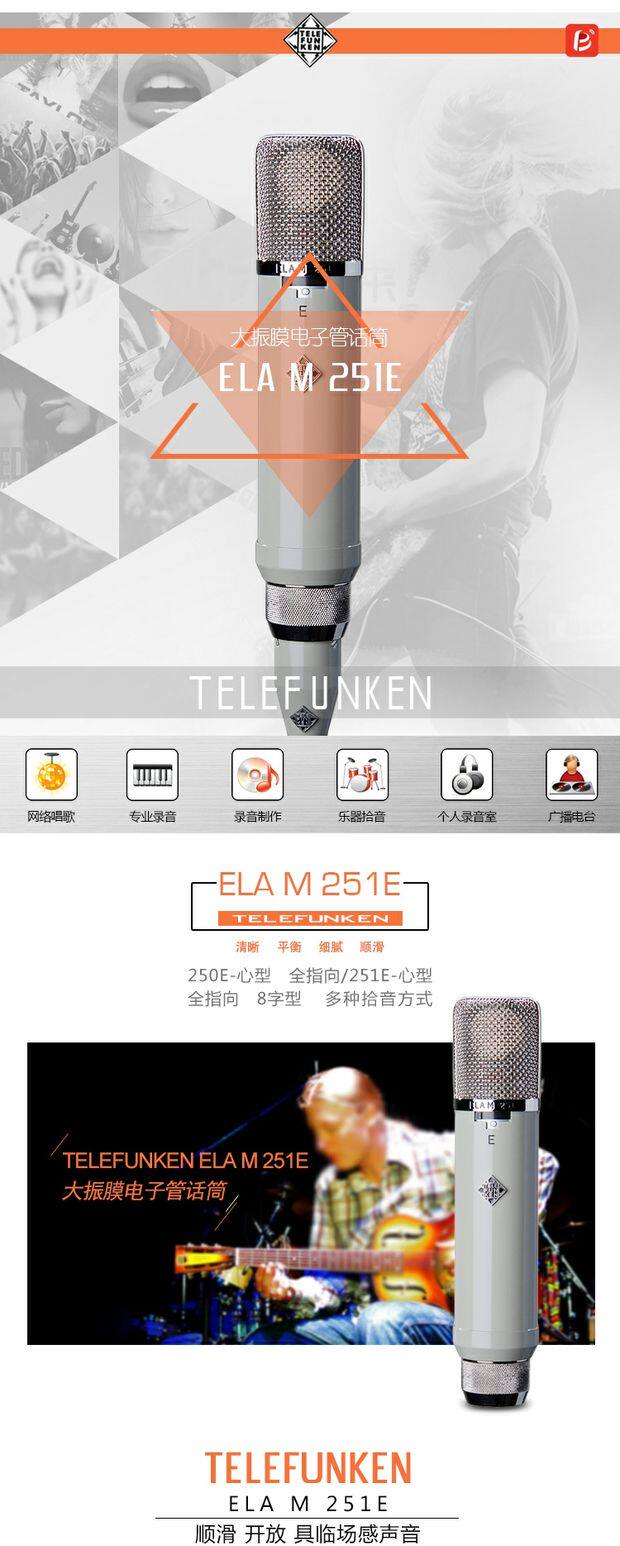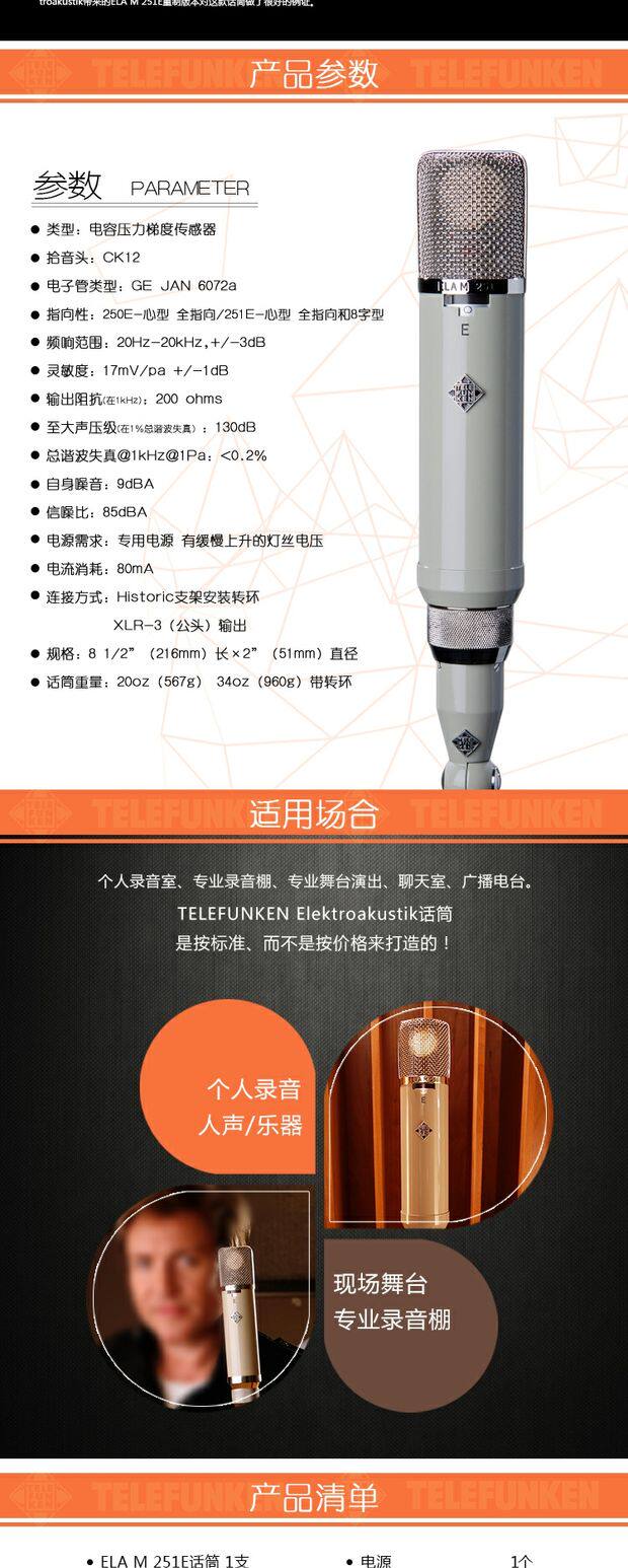 Telefunken Dezhite ELA M251E 251E Электронная трубка емкости микрофон с высоким содержанием конечностей микрофон