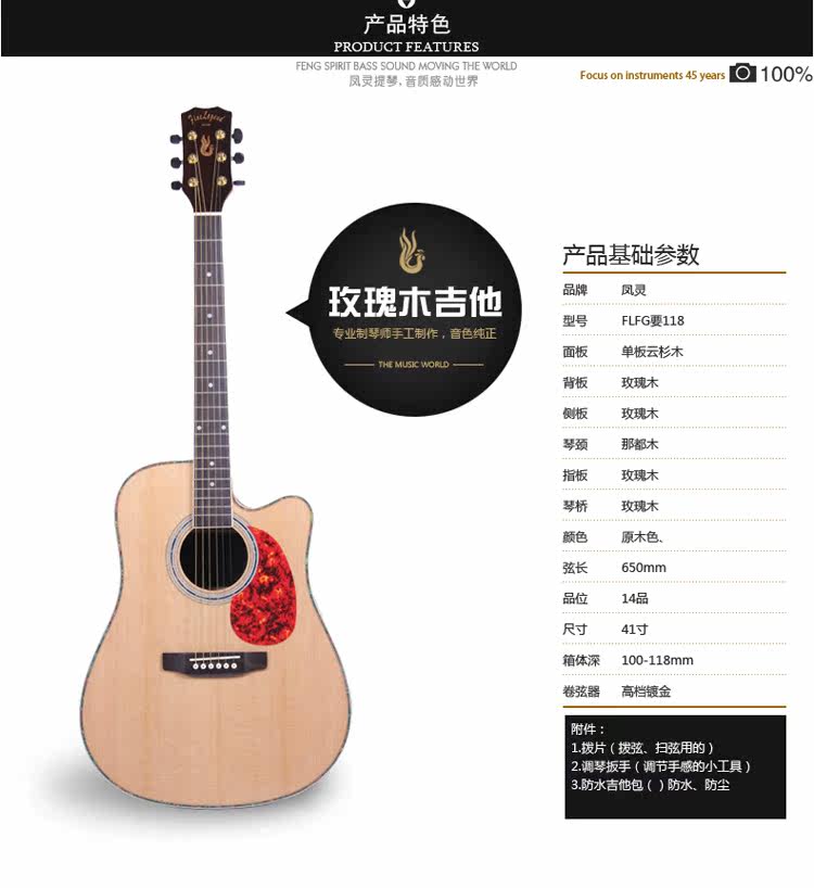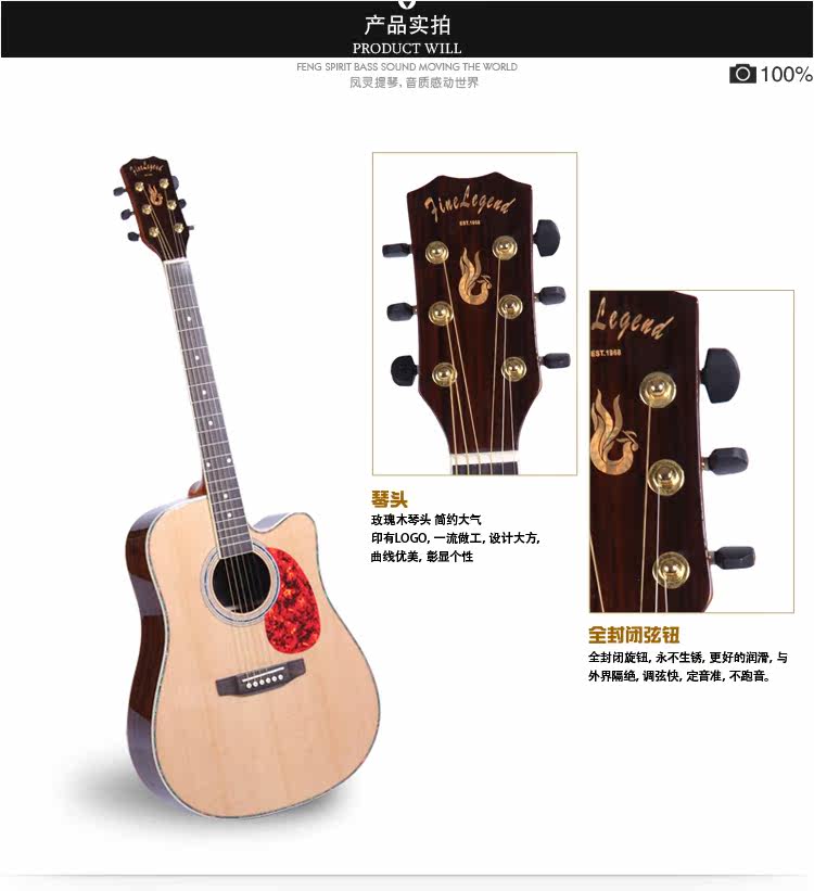 凤灵 41 Rose Noodle сингл слух деревянный гитара FLFG118 Профессиональный игровой инструмент
