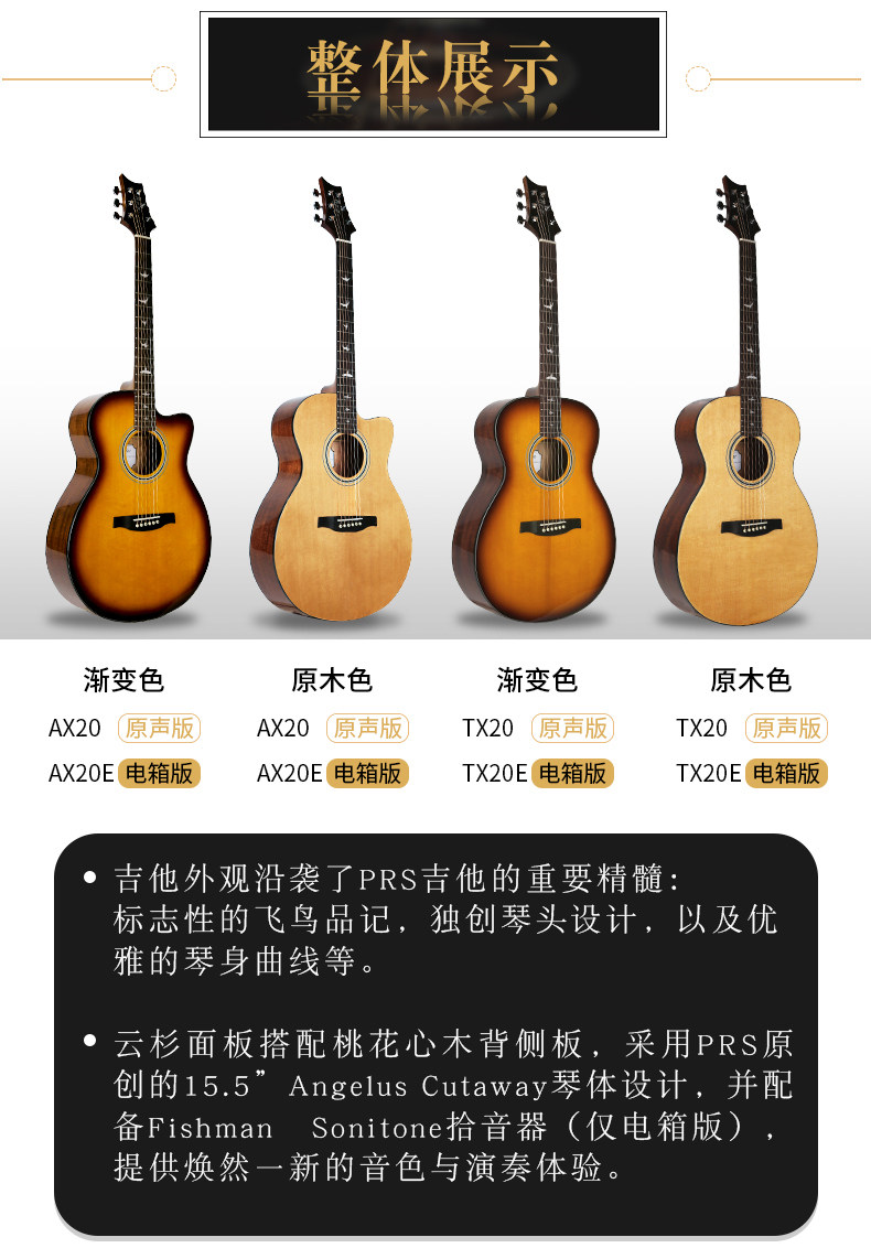 PRS SE Стандарт TX20 AX20 41 -INCH ОДИН ПАРТА ФОЛК -Деревянная Гитара Электрическая коробка