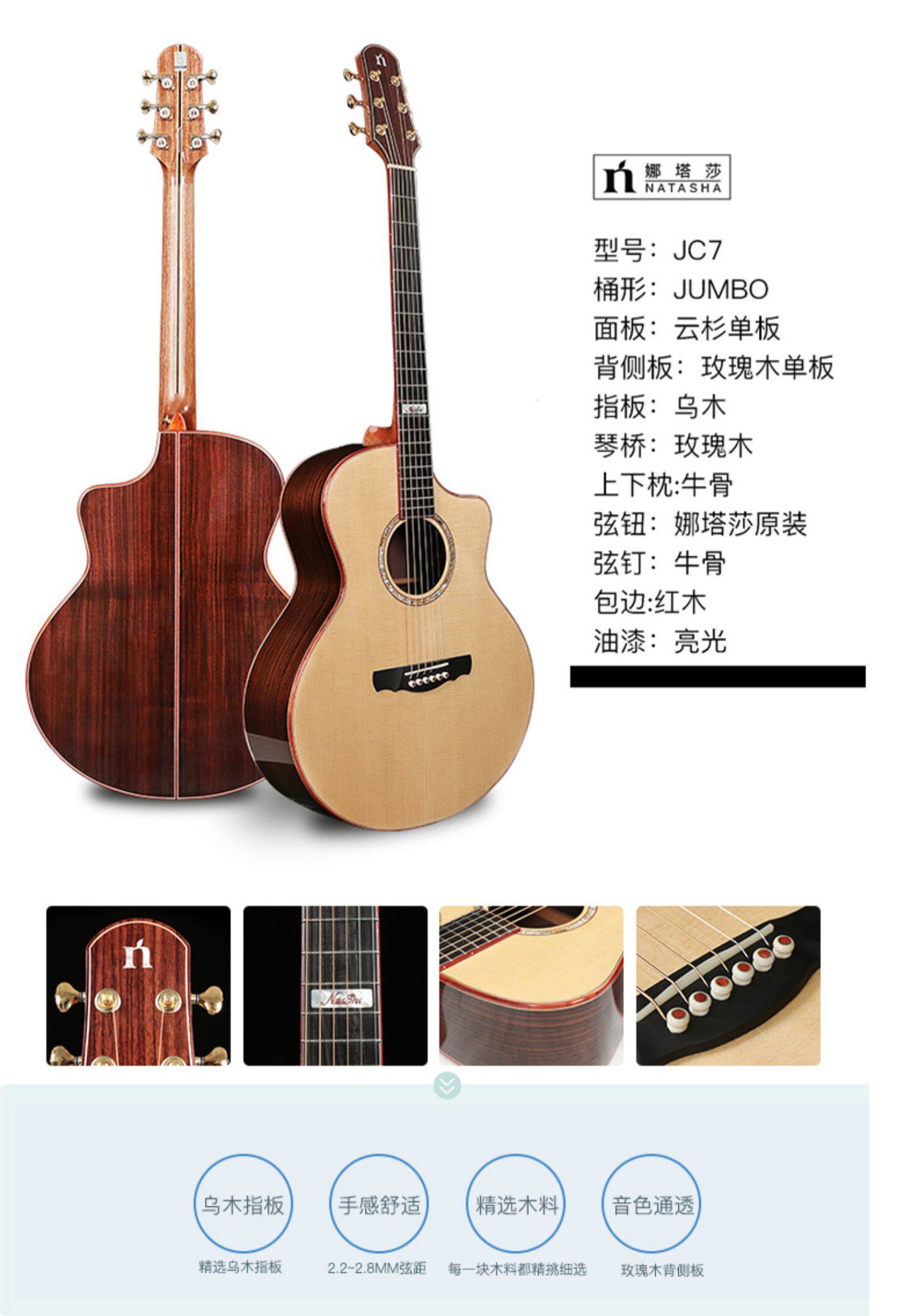 Natasha Guitar JC7 D7 Индийская роза «Все -сельские слухи» плюс гитара ручной работы с электрической коробкой 41