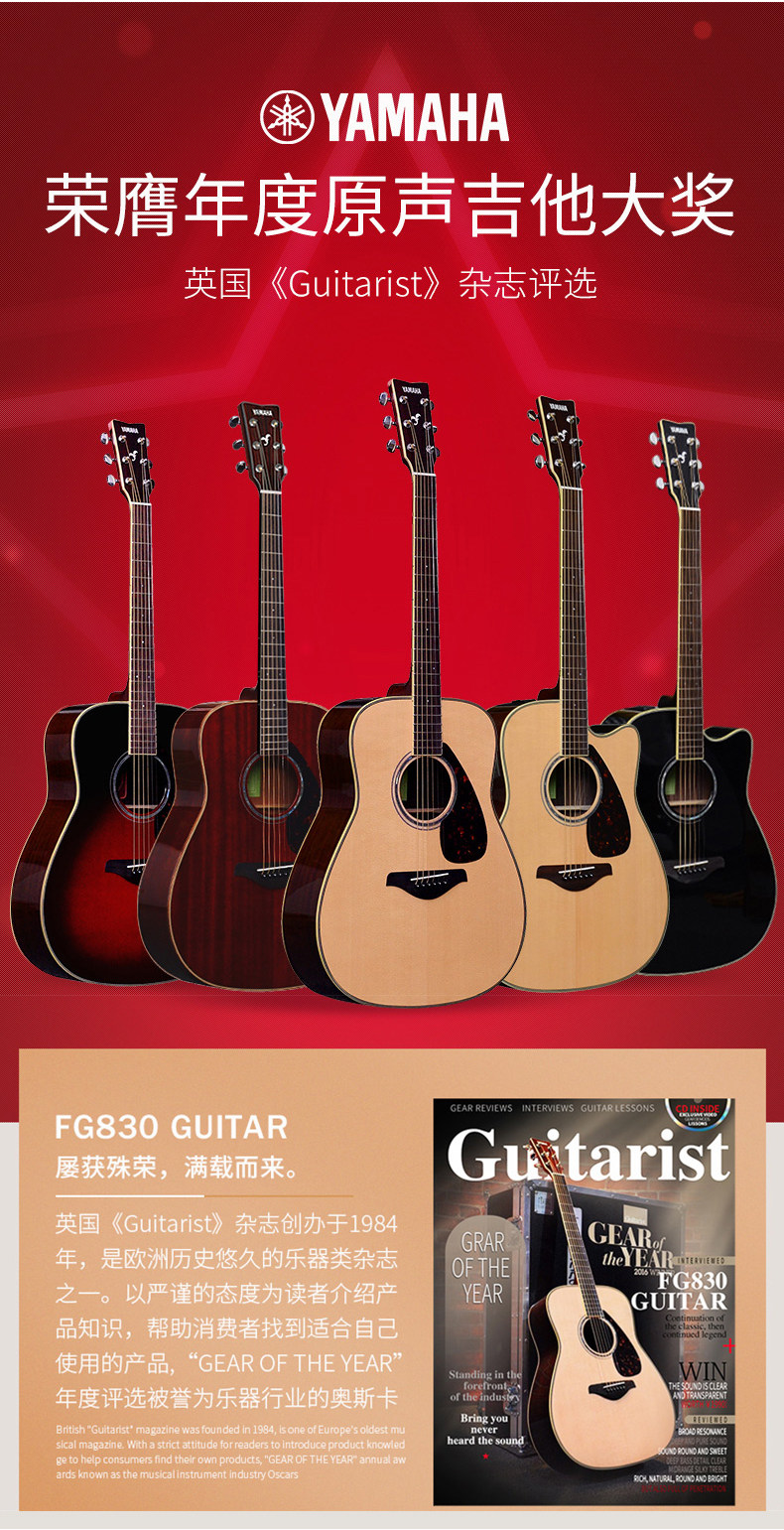 Yamaha Guitar FG830/850 Одиночная народная баллада FGTA Shocking Box Пальцы играют на гитаре 40/41