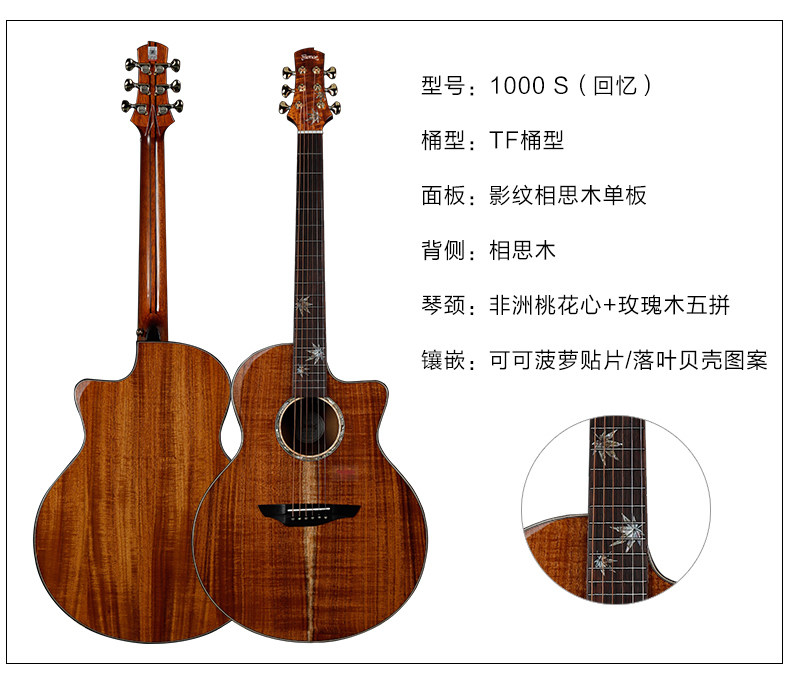楚门 Гитара 1000S Acacia одиночная доска народная баллада гитара высокая