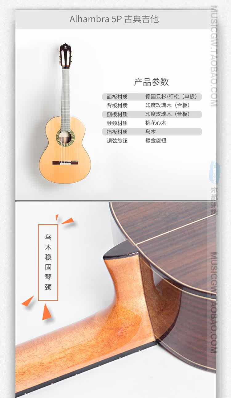 Великий стены музыкальный инструмент Алхамбра Алхамбра Испанский 5P Классическая гитарная панель кедровой панель