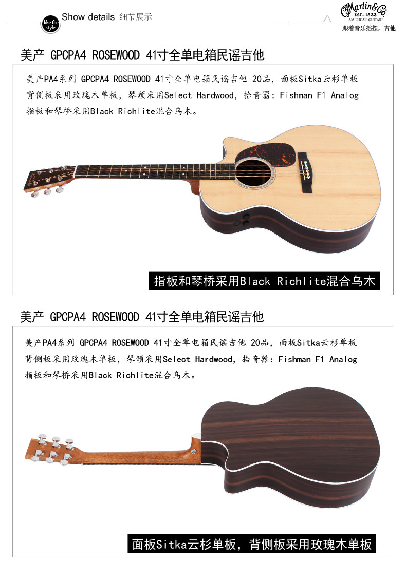 Ronghe Qinxing Martin DCPA4RW GPCPA4 Martin Martin All -Board Electric Box Folk Kitz Guitar Rose