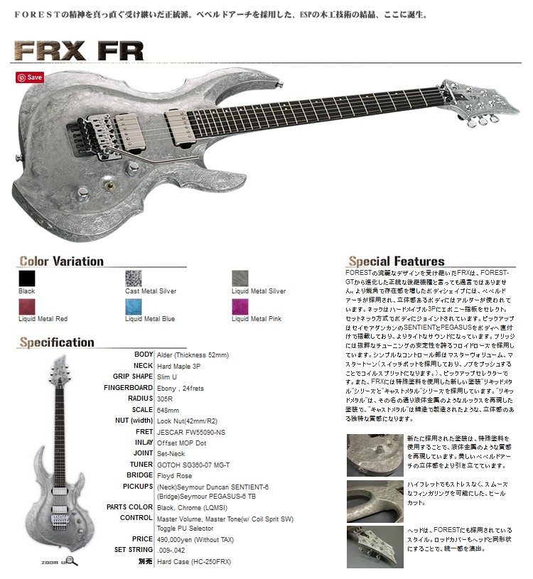 Японский ESP Оригинальный FRX Liquid Metal Silver Mia High -Fend Handicraft Guitar