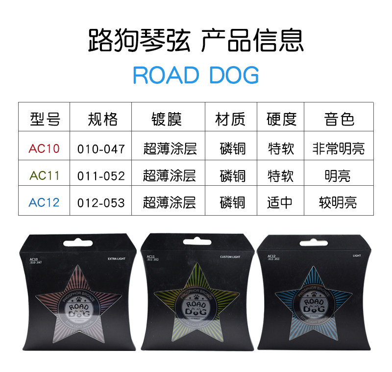 Road Dog Road Dog Film Film Rust -Resistant Phospos Phosphorus Медные струны мандарин Kitz Guitar Strings ряд из 6 полных наборов