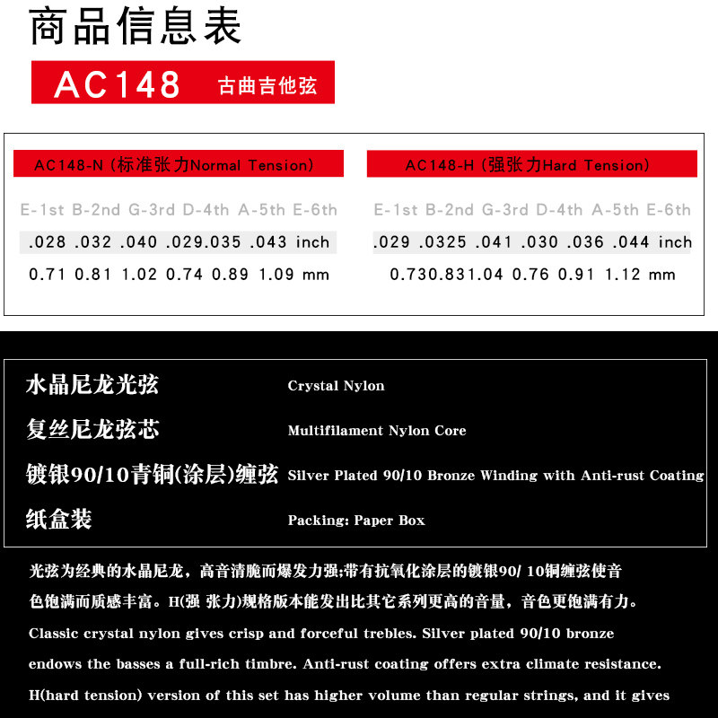 Алиса Алиса AC148 Серебряное бронзовое покрытие, завернутое в классическую гитару, находки нейлоновые струны