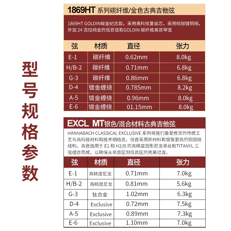 Германия Ханнабах Хансбах Классическая гитарная струна углеродного волокна Золотое нейлоновое покрытие.