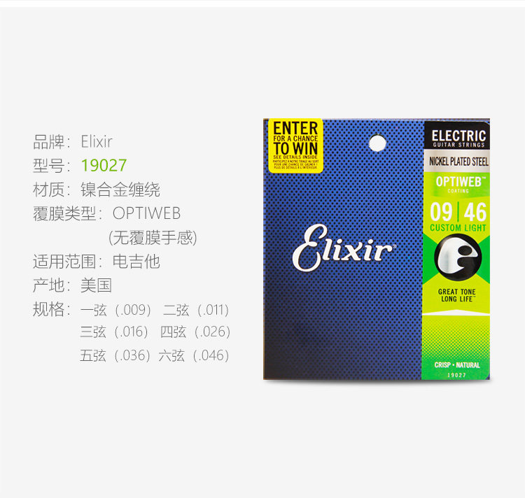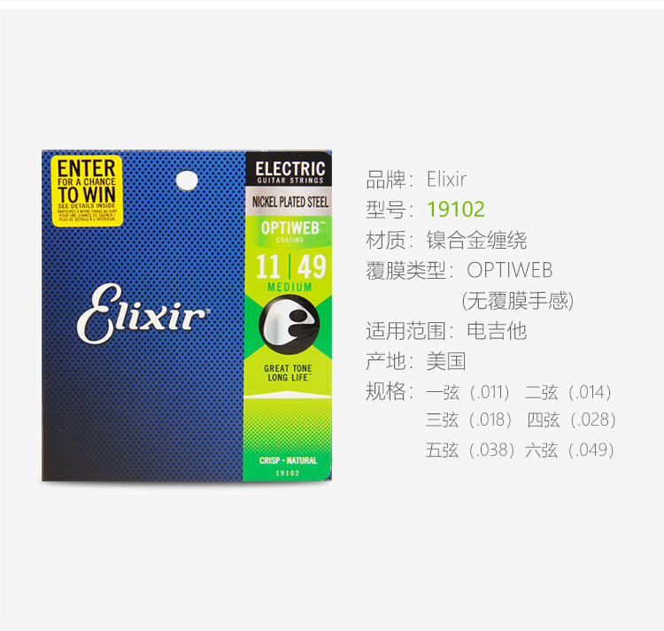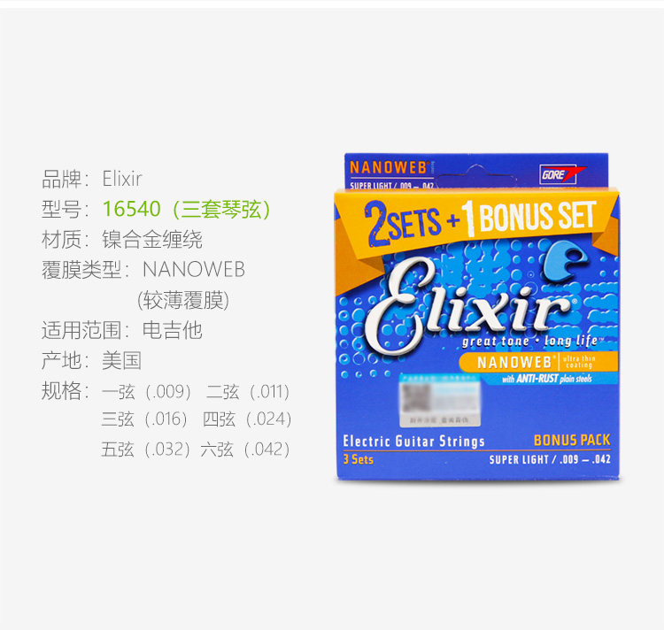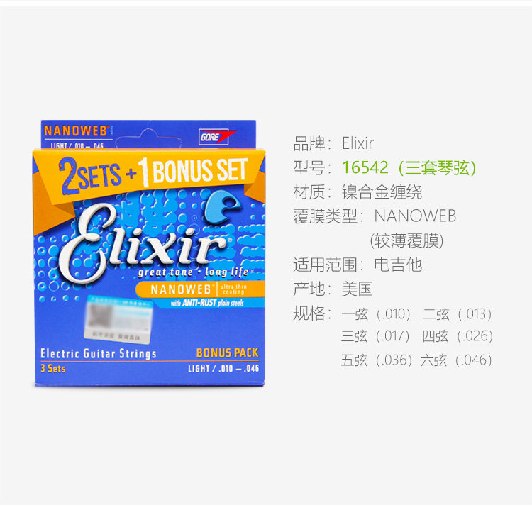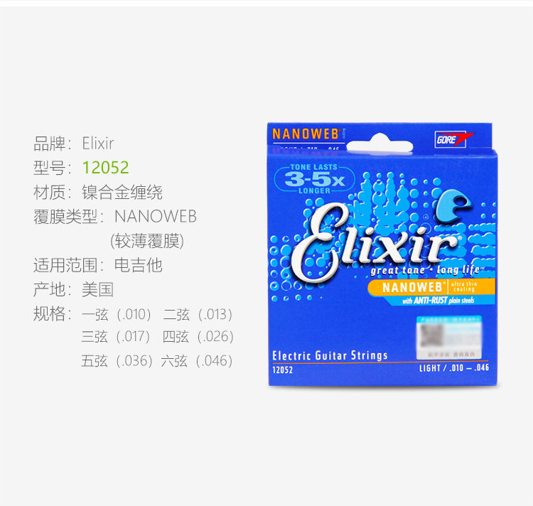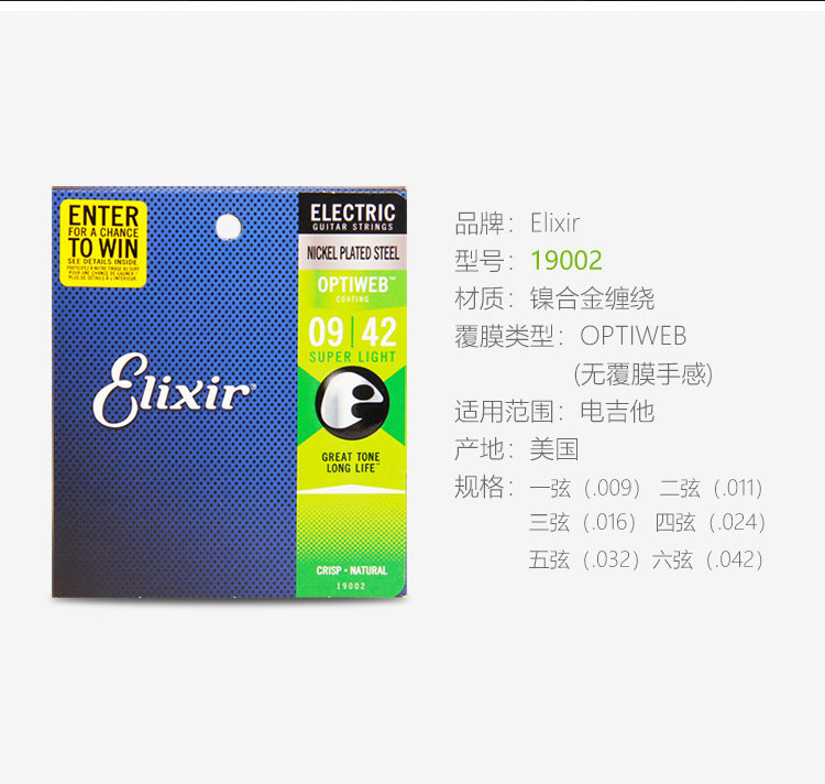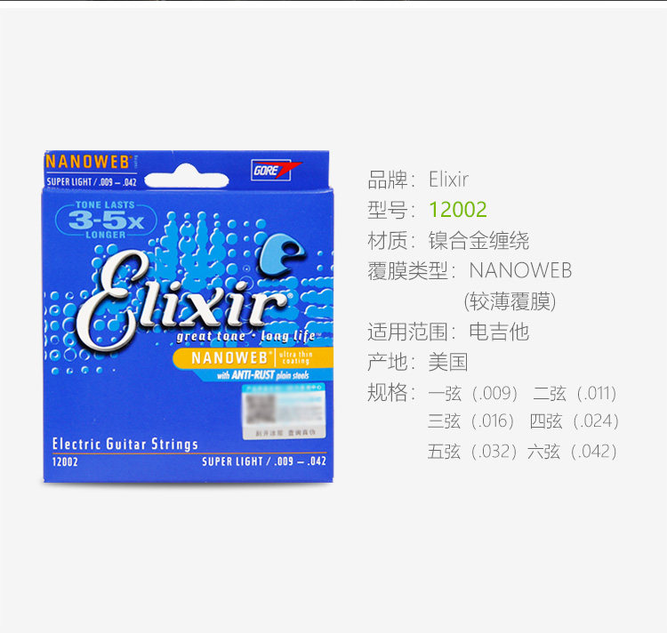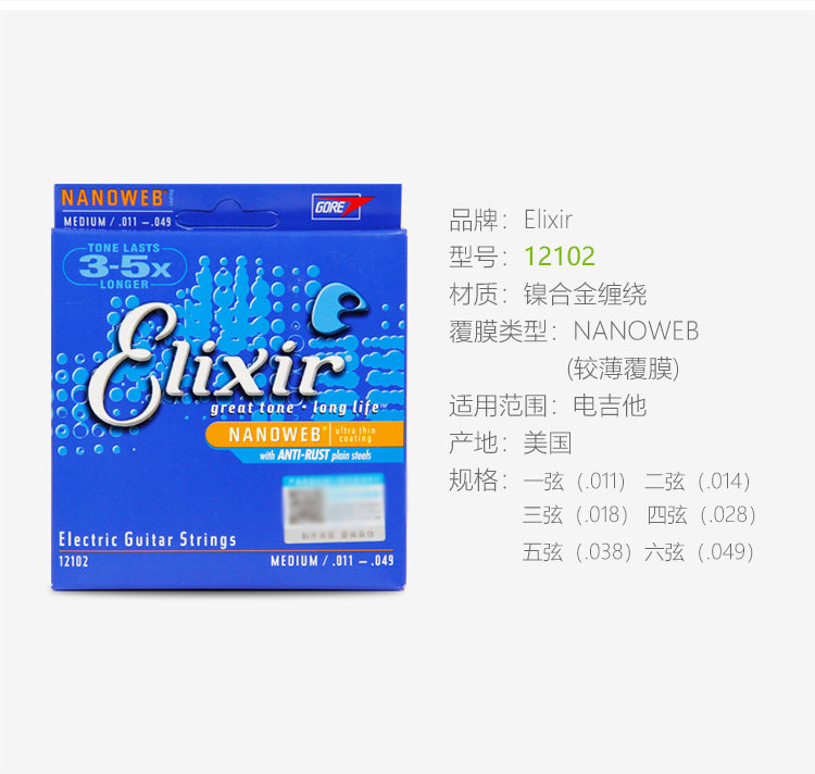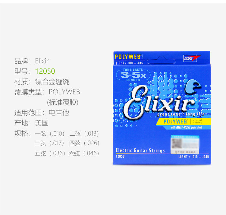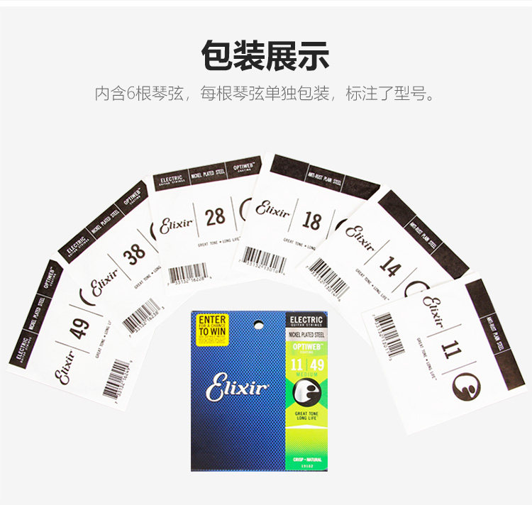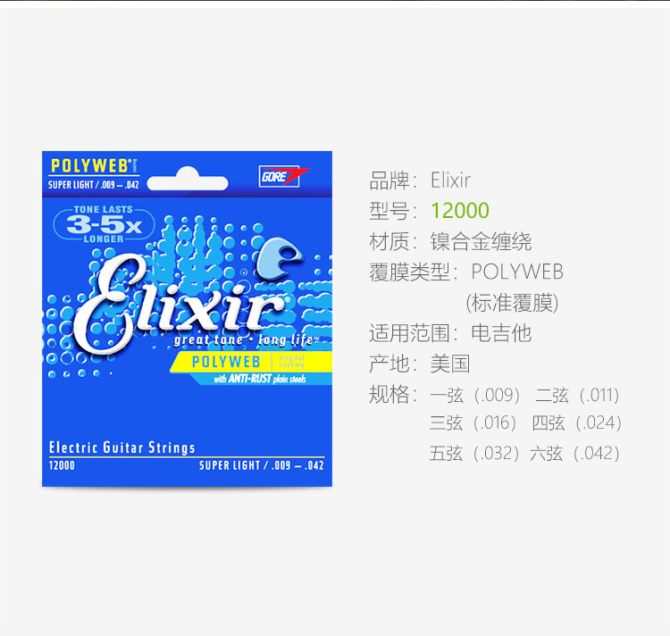 Эликсир Иликс Электро -гитарные струны. Набор из 6 тактильных фильмов -безрезультатные гитарные струны