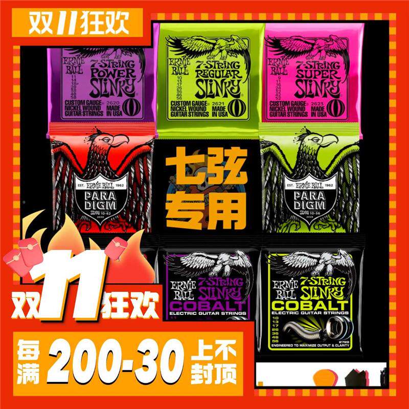 Ernieball 2620 2621 2623 2728 Стальная кобальтовая крышка с никелем 7 Строки, Семь -стригающие электронные гитарные струны EB
