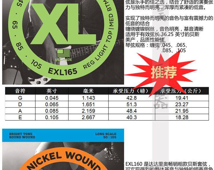 D ' Addario Dadrio Exl170 EXL160 165 Электрические басовые басовые струны четыре строки