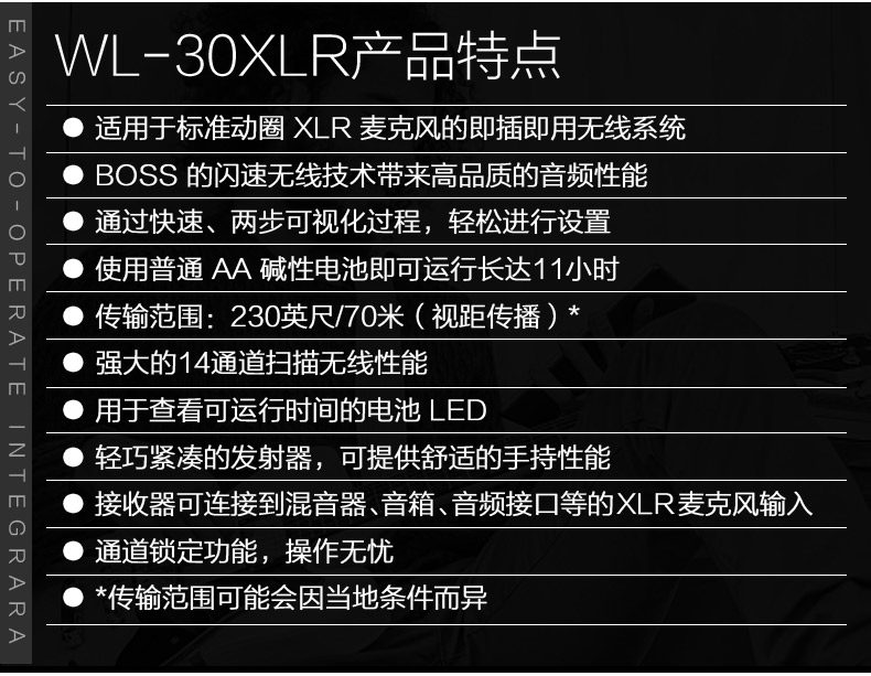 Roland Boss WL30XLR Microphone Специальная беспроводная беспроводная система передает микрофон для перемещения приемника, подключать и воспроизводить