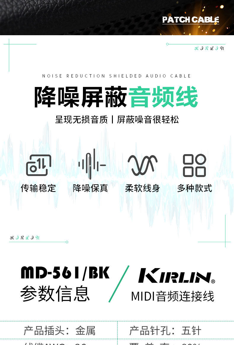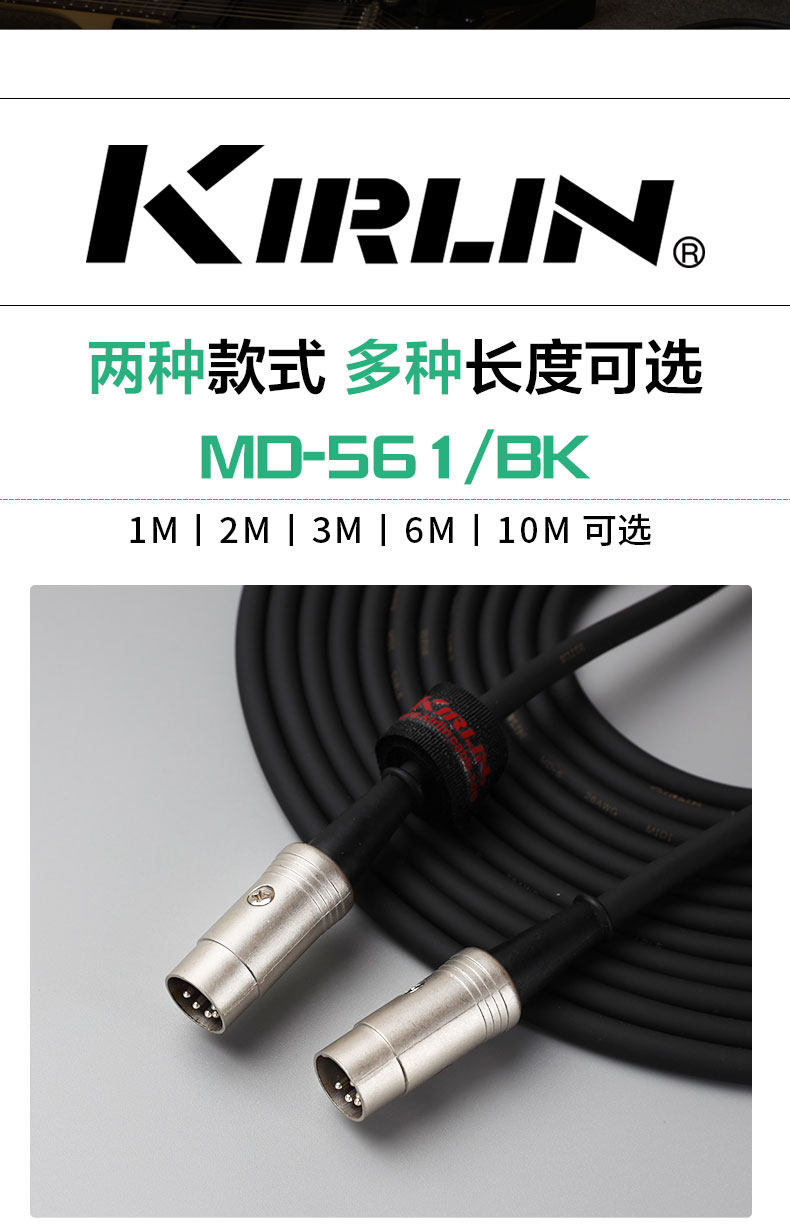 Kirlin Corin Fived -Pin и пять Core MIDI -подключаемого кабеля 5 -Pin 5 -Core Midi Line 1 -метра 3 метра 6 метров 10 метров