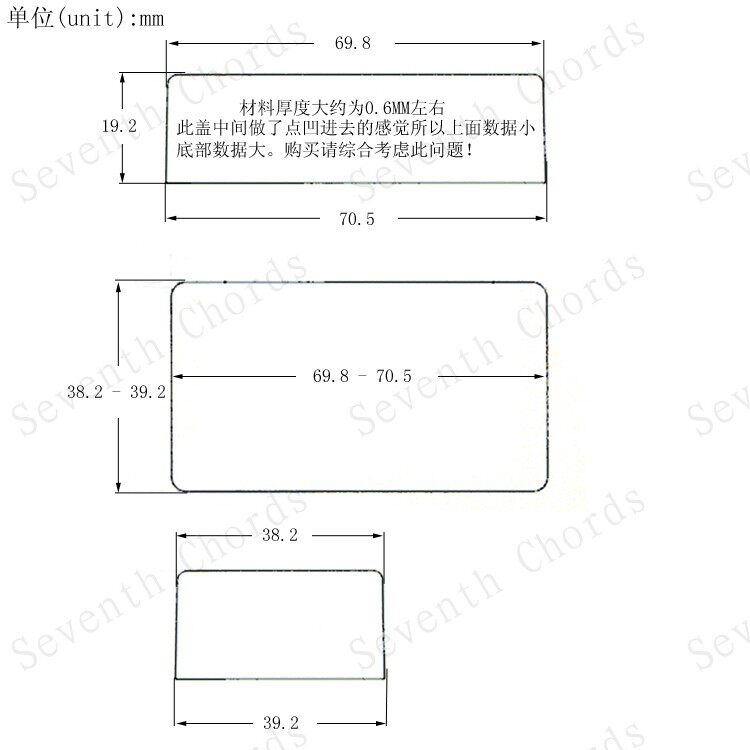размер:(Как показано в деталях ниже). Верхний и нижний большие данные, отображаемые диаграммой размера, связаны с тем, что середина крышки имеет небольшое утопленное ощущение, поэтому данные на верхней части крышки меньше, а нижняя часть крышки немного больше.Затем уменьшите толщину материала крышки во время фактического анализа.Толщина составляет около 0,6 мм.Кроме того, ручное измерение не имеет пути без ошибок.Обычно он контролируется примерно на 0,2 мм.Спасибо за ваше сотрудничество!