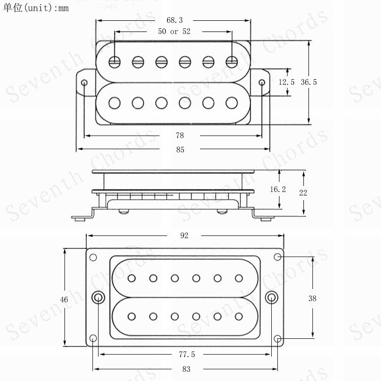 Спецификация:50 (6 точек центра магнитных отверстий 50 мм, подходящие для пикапов возле шеи)