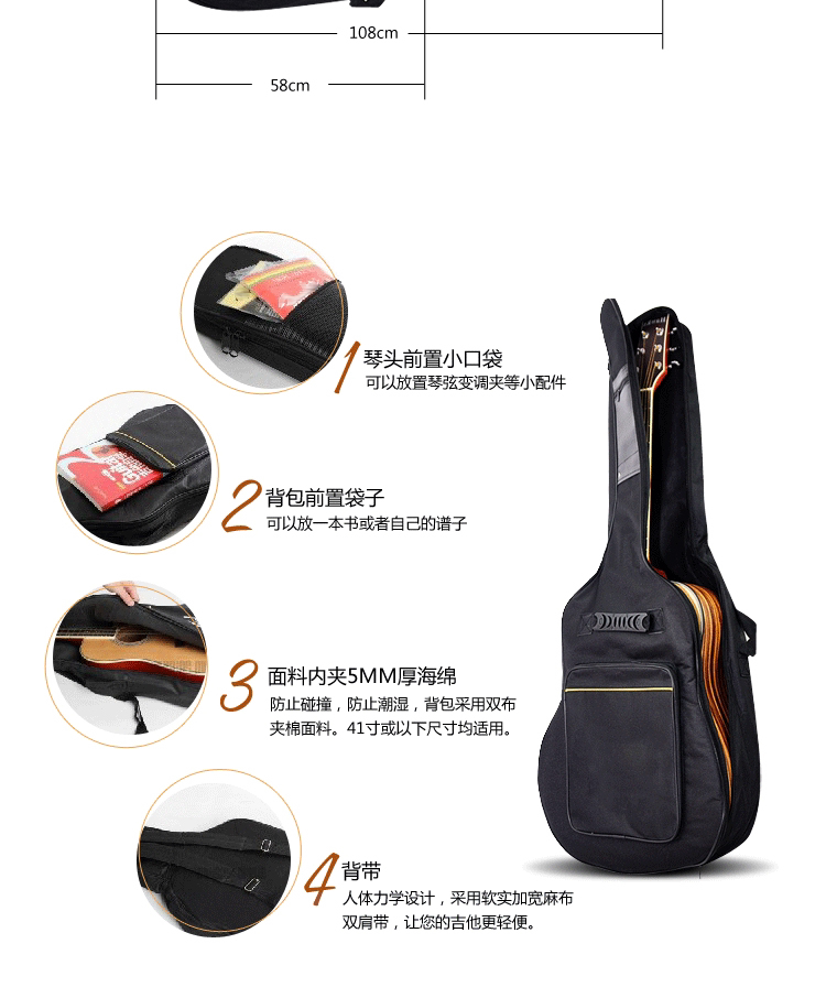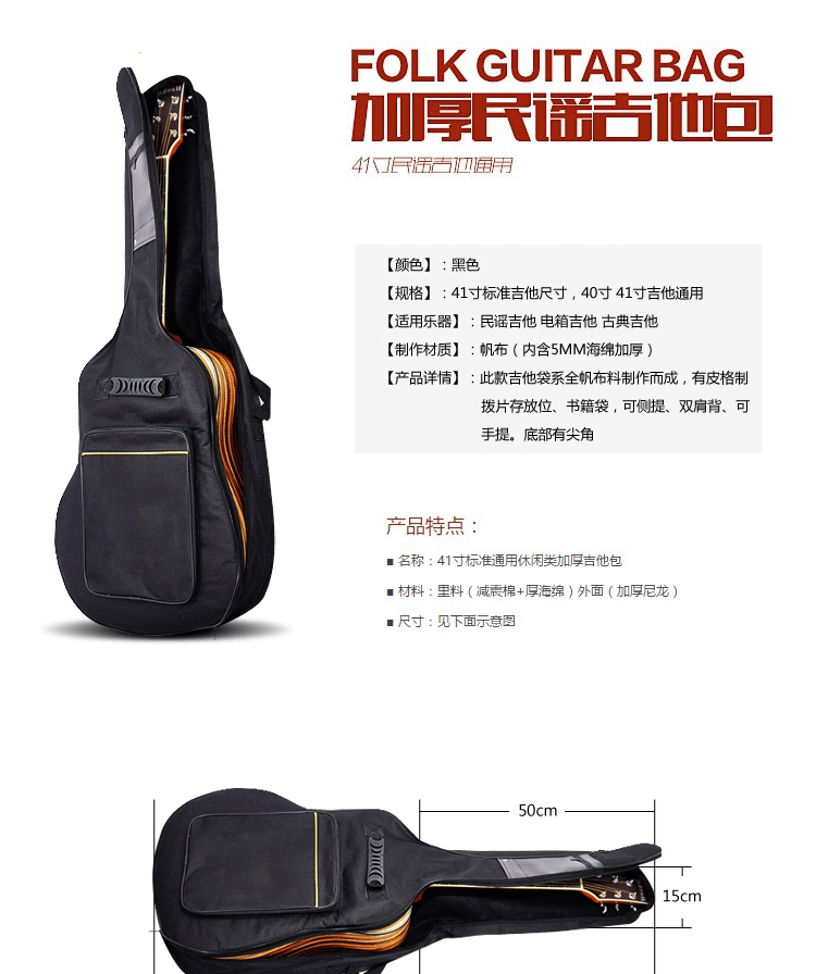 Стеганая поролоновая трехмерная гитара, 40, 41 дюймов, увеличенная толщина, трехмерная защита