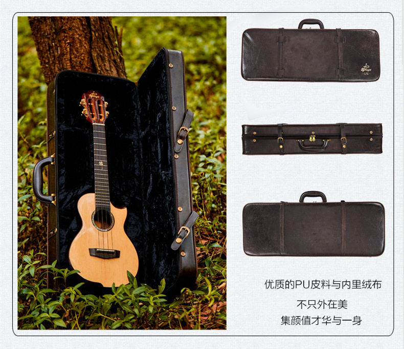 Ретро укулеле с партитурой, чемодан, портативная гитара, 23 дюймов, 26 дюймов, увеличенная толщина, защита при падении