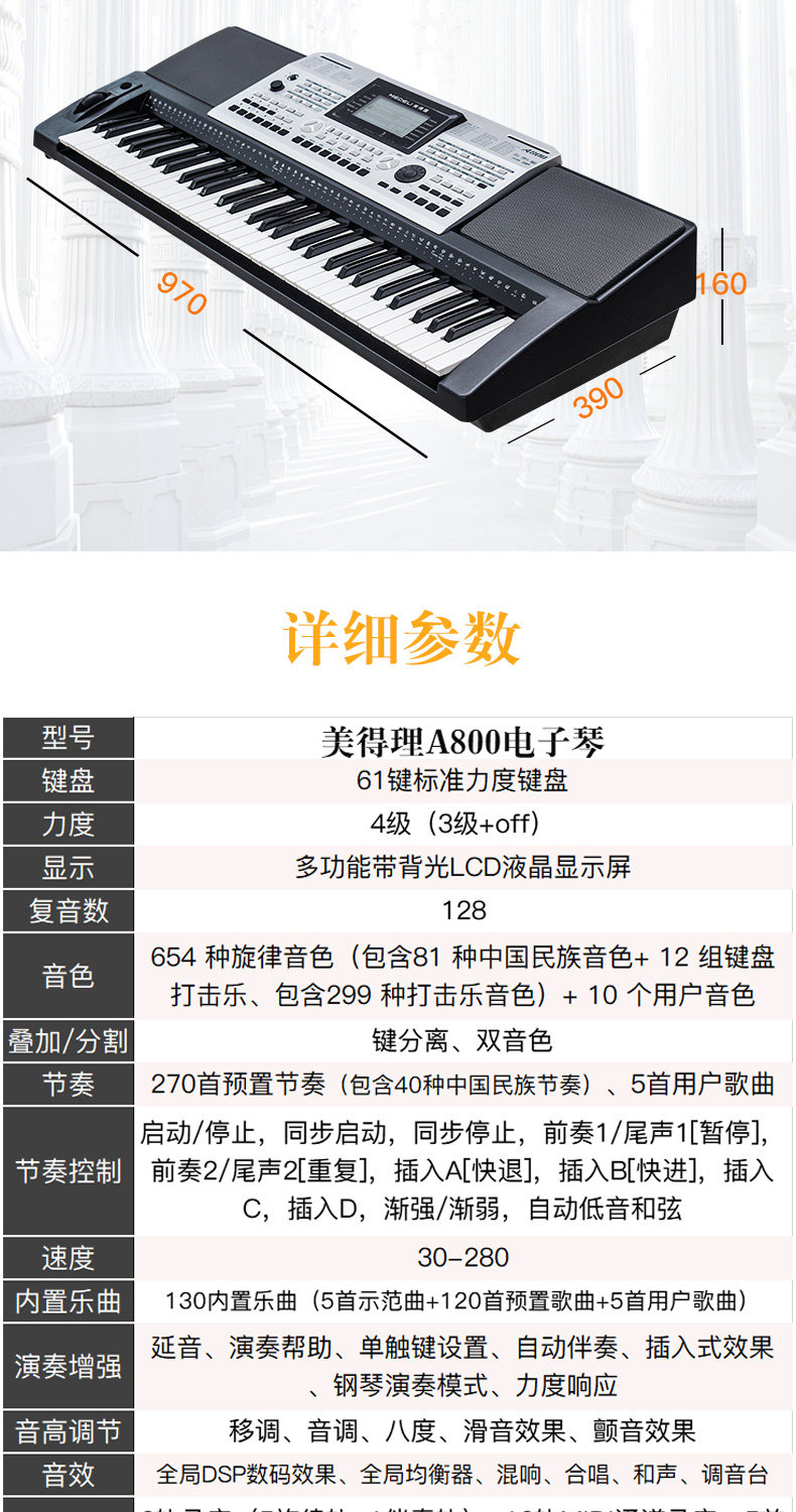 Meishari Electronic Piano A800 Standard Standard Kids's Performance Professional Test 61 Ключ