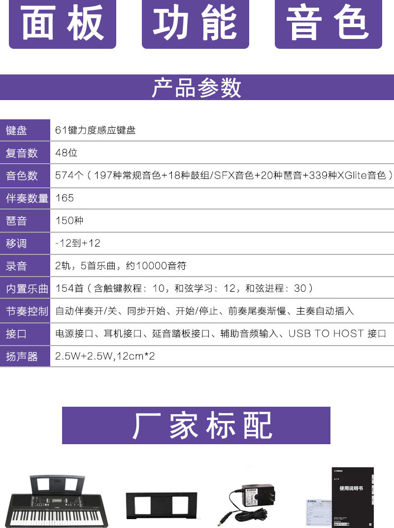 Цвет: PSR-E373 Электронное пианино (61 ключ), PSR-EW310 Электронное пианино (76 ключ)