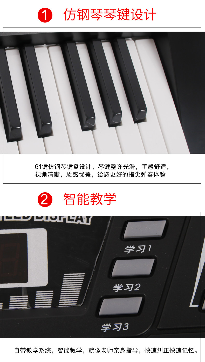 Синтезатор, пианино для взрослых, 61 клавиш, подходит для начинающих