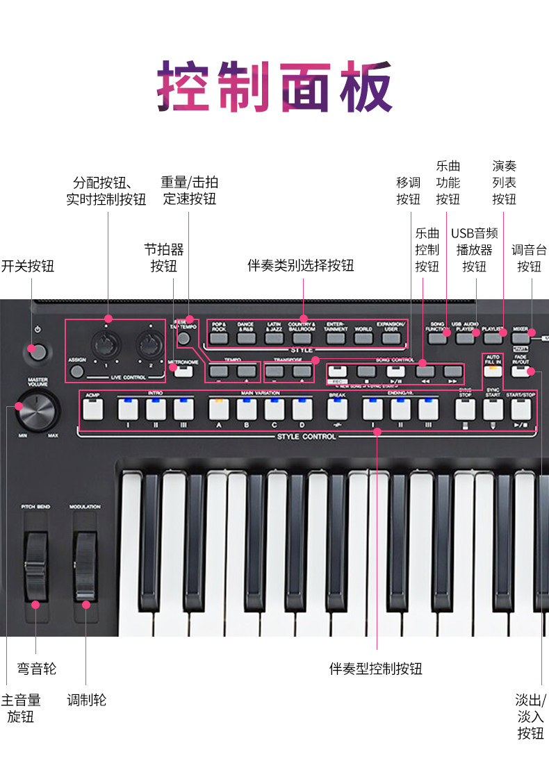 Yamaha, профессиональный синтезатор, освещение для пианино, клавиатура, 61 клавиш, 670 л