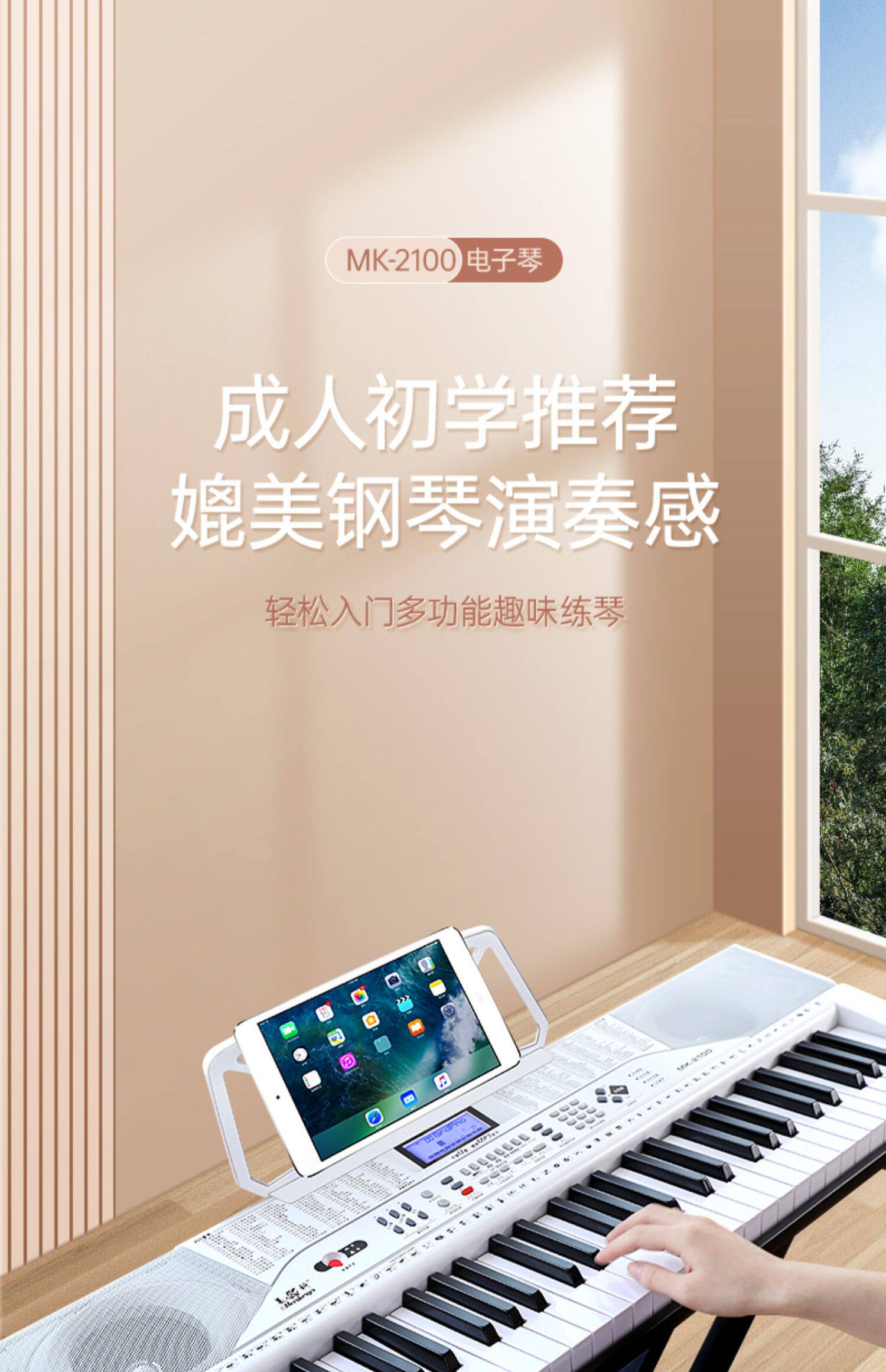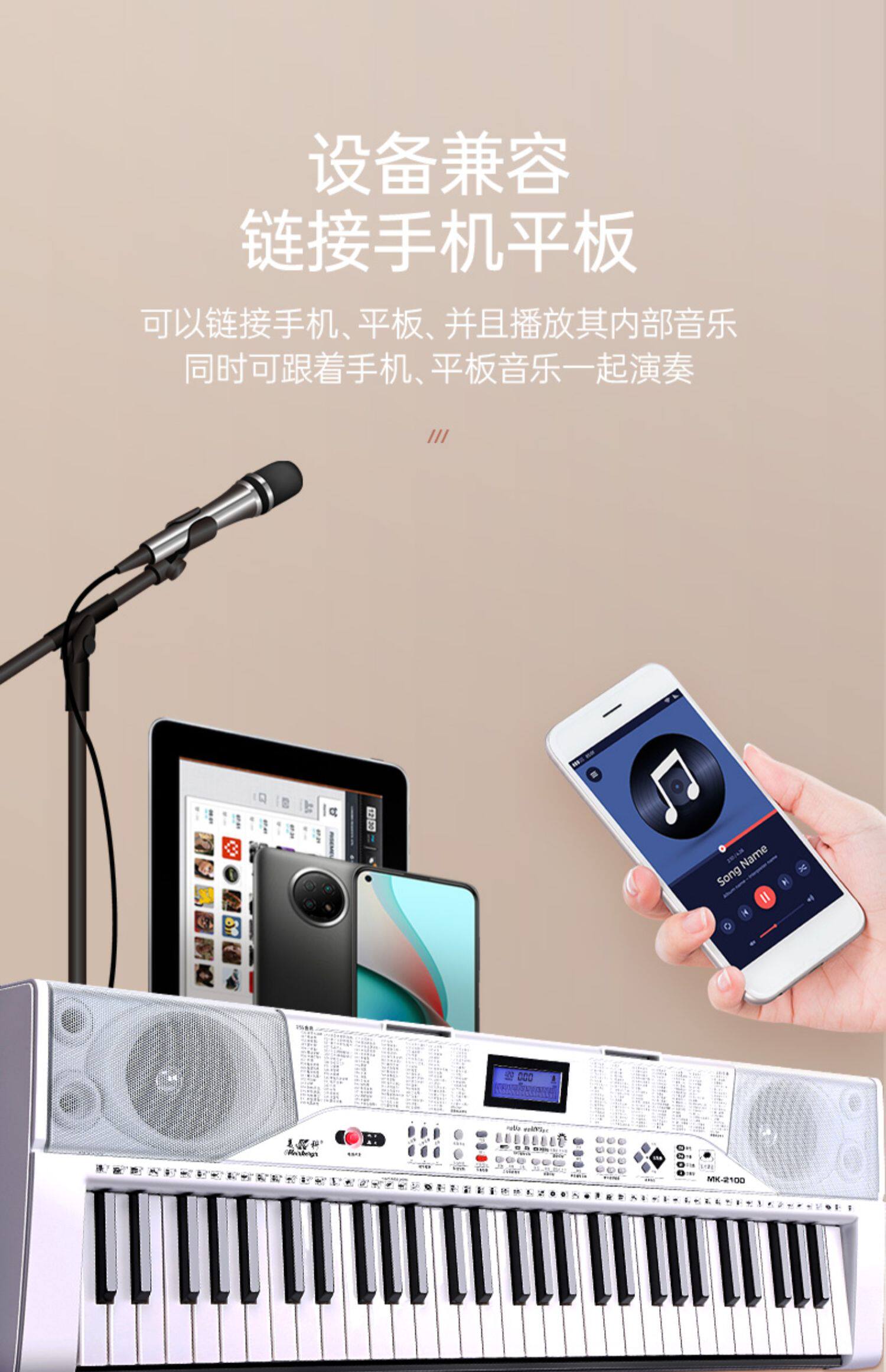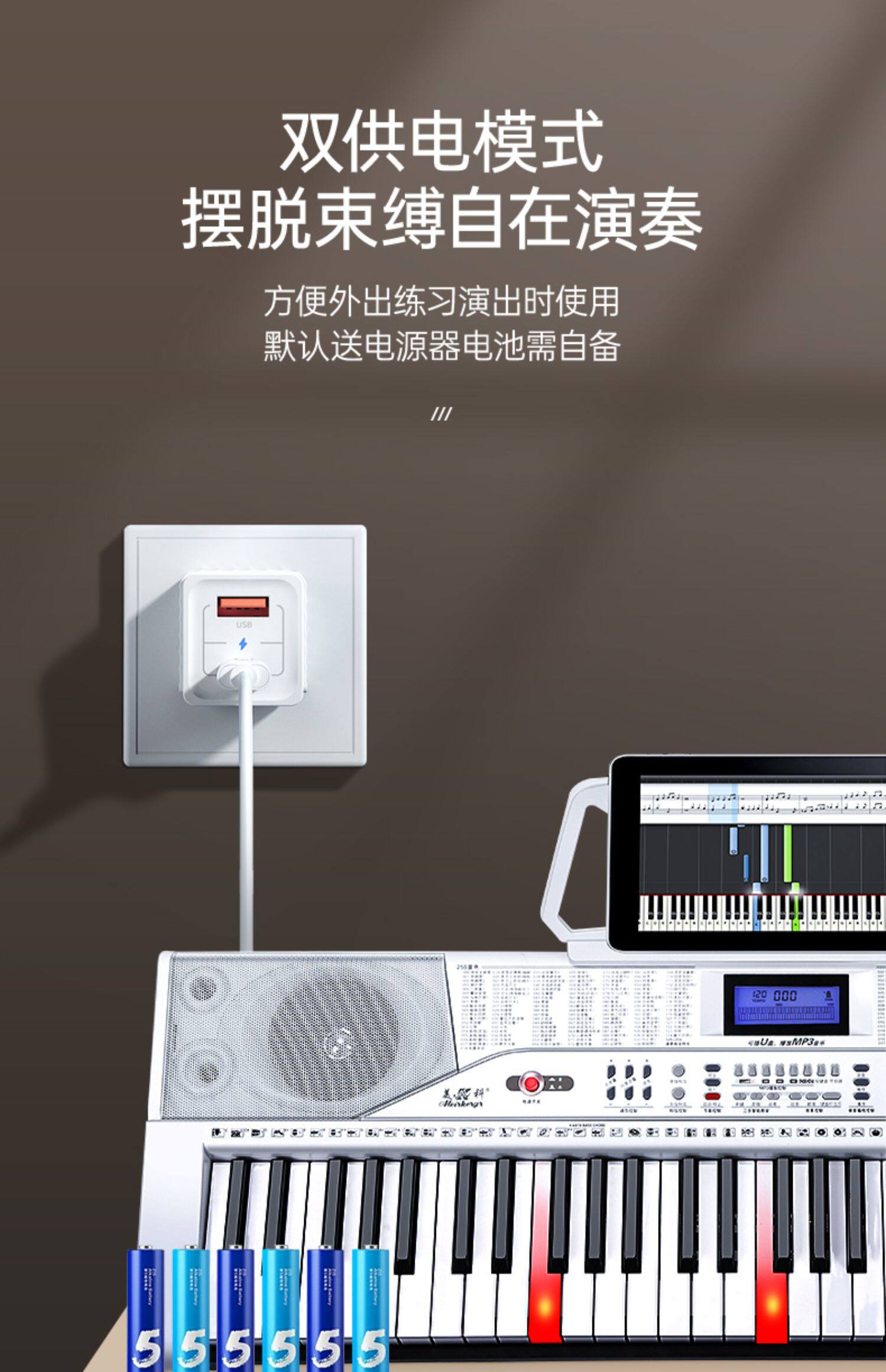Белый умный универсальный синтезатор для детей и взрослых, 61 клавиш, подходит для начинающих, обучение