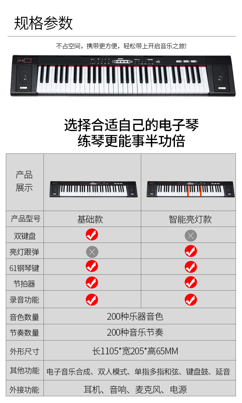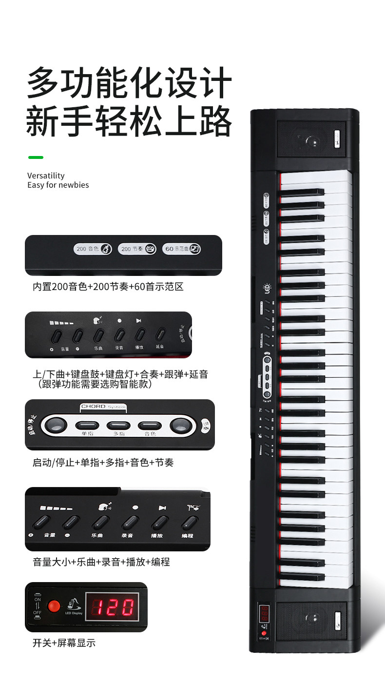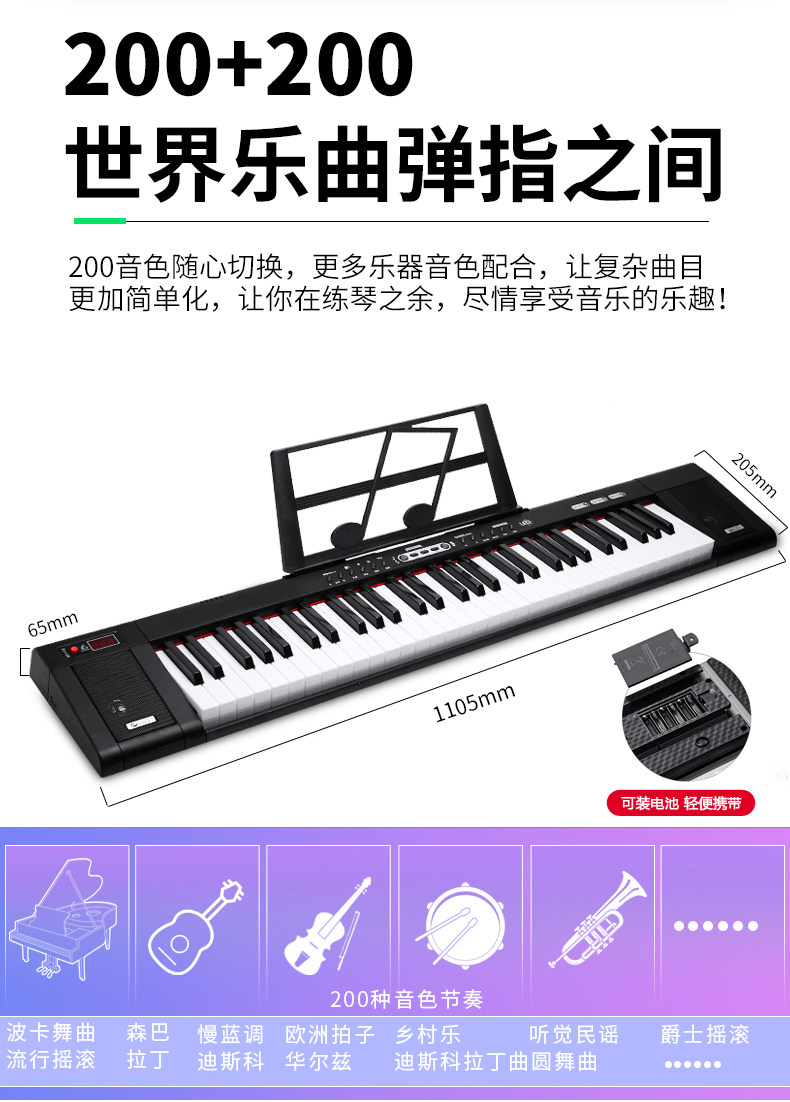 Универсальный профессиональный портативный синтезатор для начинающих для детей и взрослых, 61 клавиш