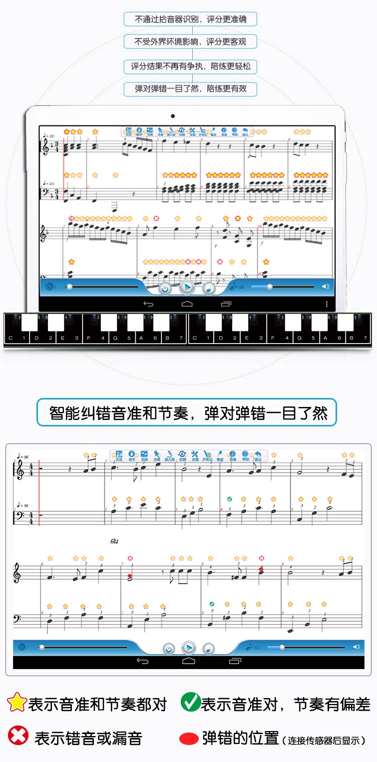 Инструмент по исправлению ошибок при приложении для приложения для прослушивания для детей для взрослых для взрослых тренировочные сокровища и тест на фортепиано