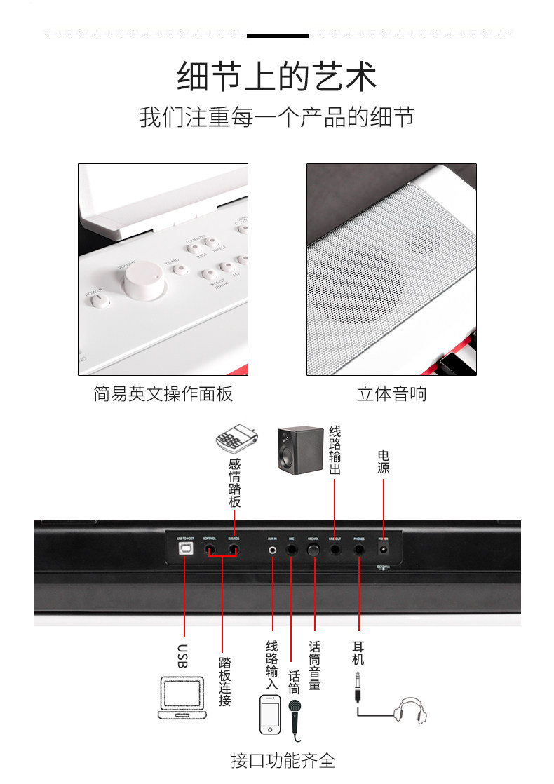 Профессиональный портативный синтезатор, умное цифровое пианино для начинающих, 88 клавиш