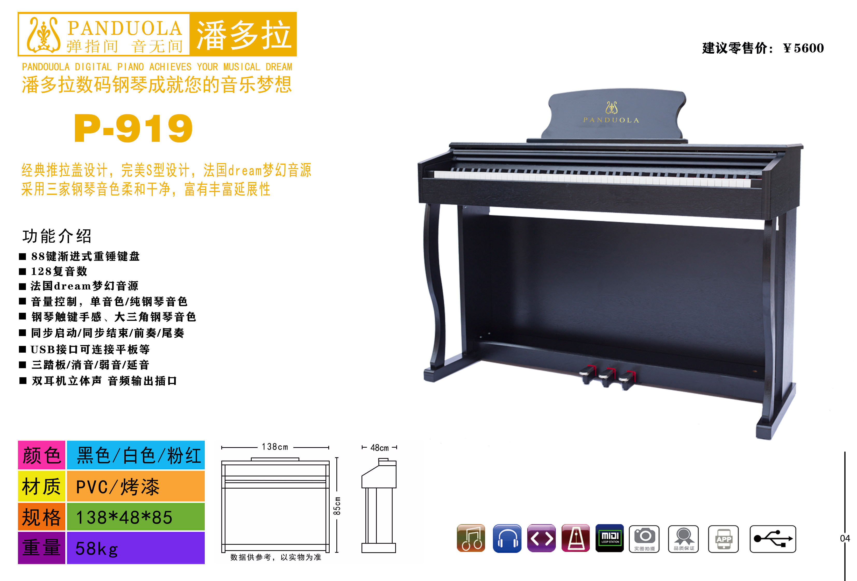 Pandora, умный профессиональный цифровой синтезатор, 88 клавиш