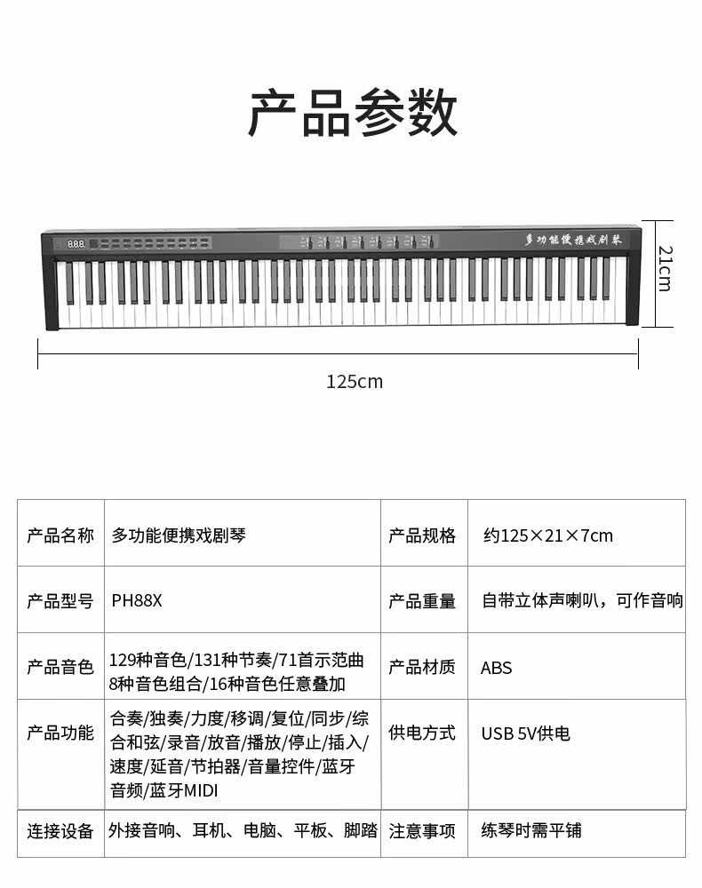 科汇兴 Портативный профессиональный синтезатор, 88 клавиш, подходит для начинающих