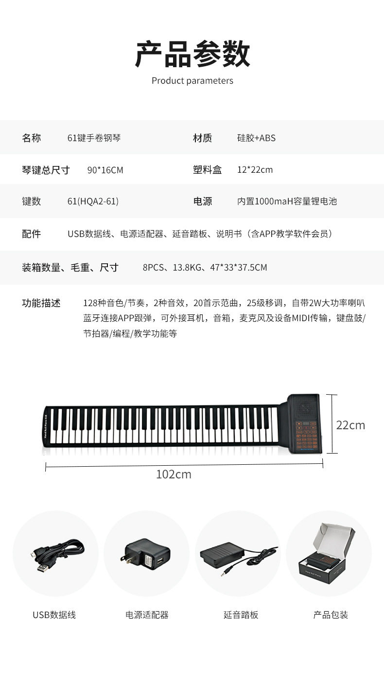 Универсальное умное портативное пианино для начинающих, 61 клавиш