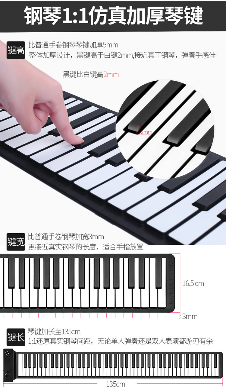 Пианино, профессиональная складная портативная клавиатура, универсальная практика для школьников, 88 клавиш, увеличенная толщина