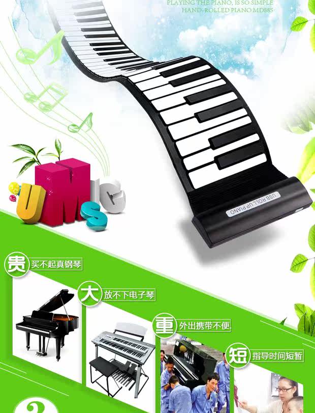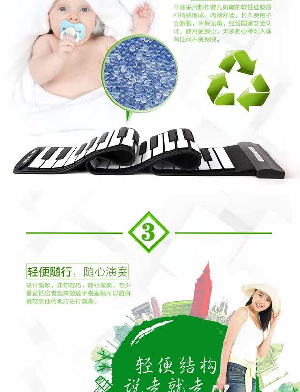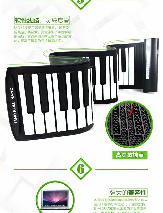 Складное пианино, синтезатор, портативная клавиатура, 61 клавиш