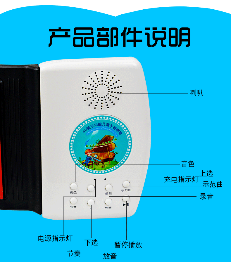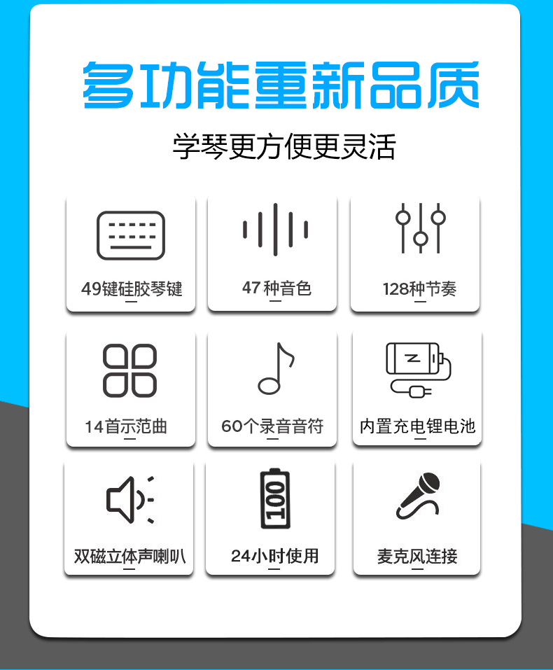 水墨缘 Пианино, игрушка, музыкальные инструменты, 49 клавиш, увеличенная толщина, подходит для начинающих, раннее развитие