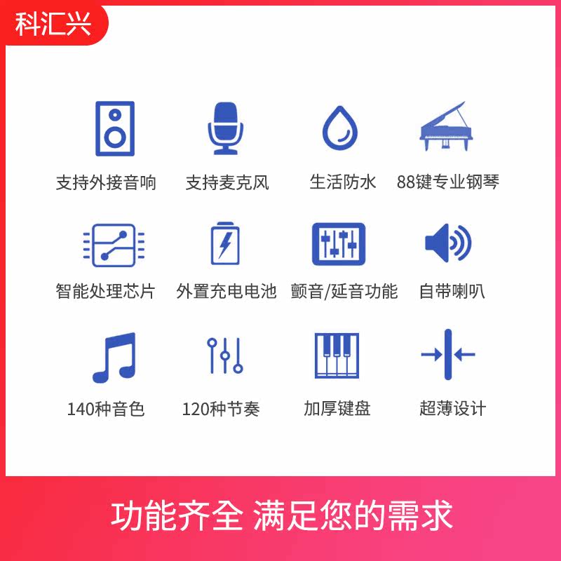 科汇兴 Электронное пианино, профессиональная клавиатура, портативная складная практика для начинающих, 88 клавиш, увеличенная толщина, версия для начинающих